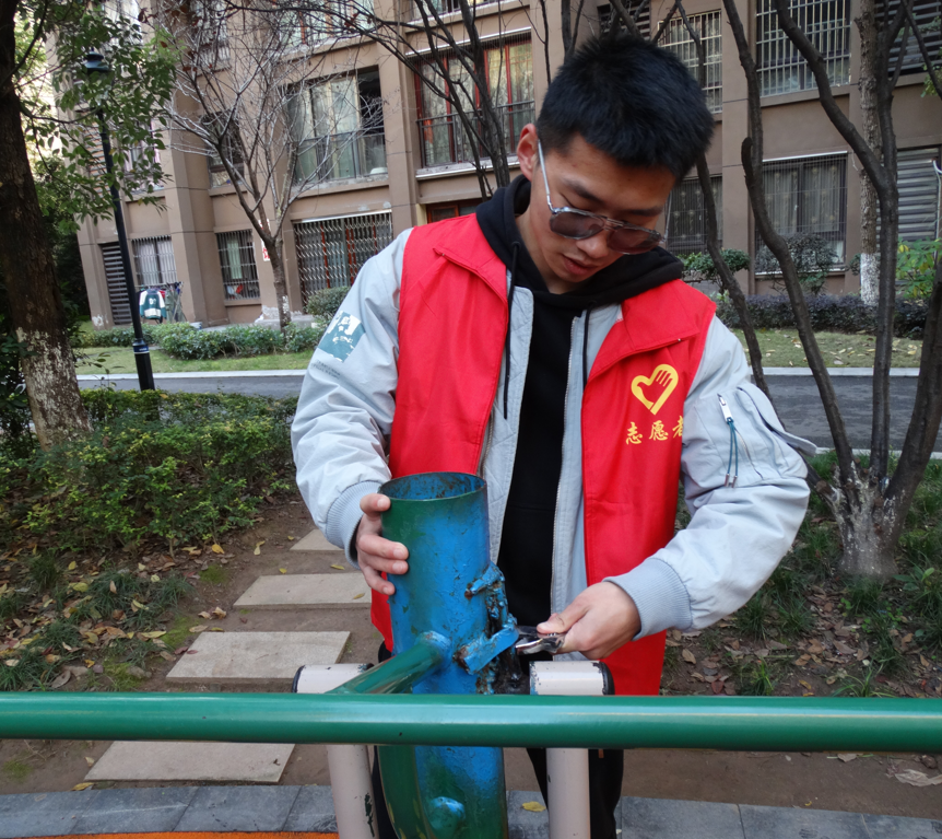 随后,通识教育学院发挥体育教师优势,对社区内的体育健身器材设施进行检查,简单维修和清洁。经过检修检查,对发现部分体育健身器材存有的安全隐患进行修整,无法当场维修的项目以维修建议的方式提交给社区。
