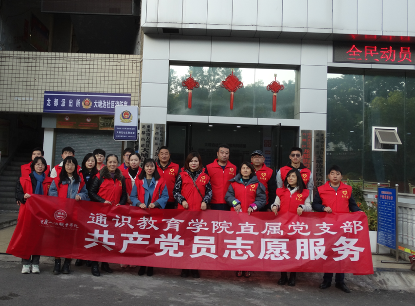 志愿服务是培育和践行社会主义核心价值观的重要载体,是建设服务型基层党组织的重要载体,是共产党员发挥先锋模范作用的重要载体。为充分发挥党员服务社区、服务群众、奉献社会的先锋模范作用,2021年11月30日,通识教育学院直属党支部组织党员教师在大塘边居委会开展志愿服务主题党日活动,积极探索建立“党建+志愿服务”模式,为群众办实事,助推创文工作建设。