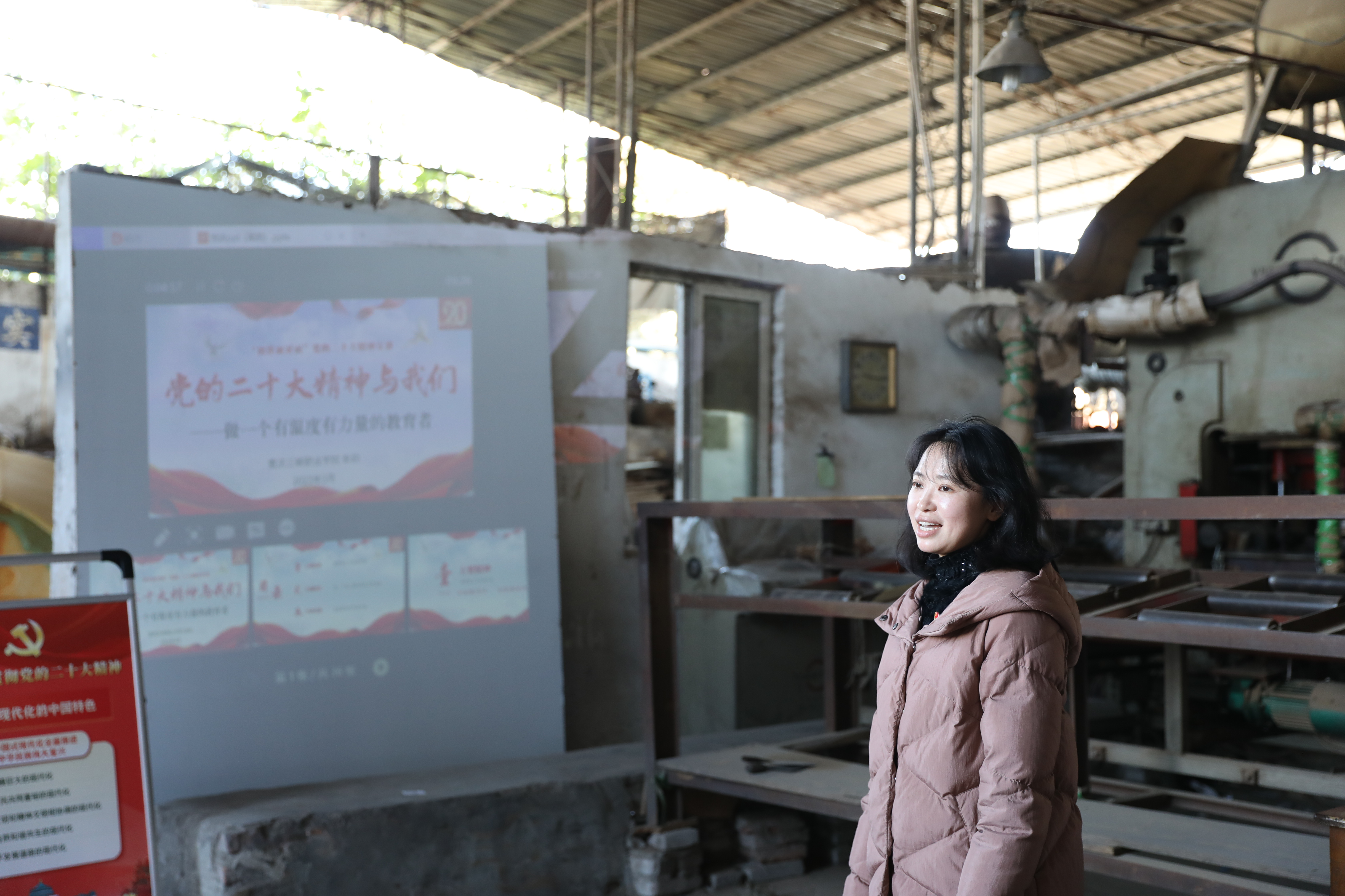 习近平总书记在党的二十大报告中指出,“建设全民终身学习的学习型社会、学习型大国”。这一战略部署,对提高人民的思想道德素质、科学文化素质和身心健康素质,服务全面建设社会主义现代化国家战略任务,具有重大指导意义。为了学习好、宣传好、贯彻好党的二十大精神,3月14日上午9:00,通识教育学院直属党支部党员教师奉莉同志带着宣讲任务来到了万州区双河口成见建材经营部。