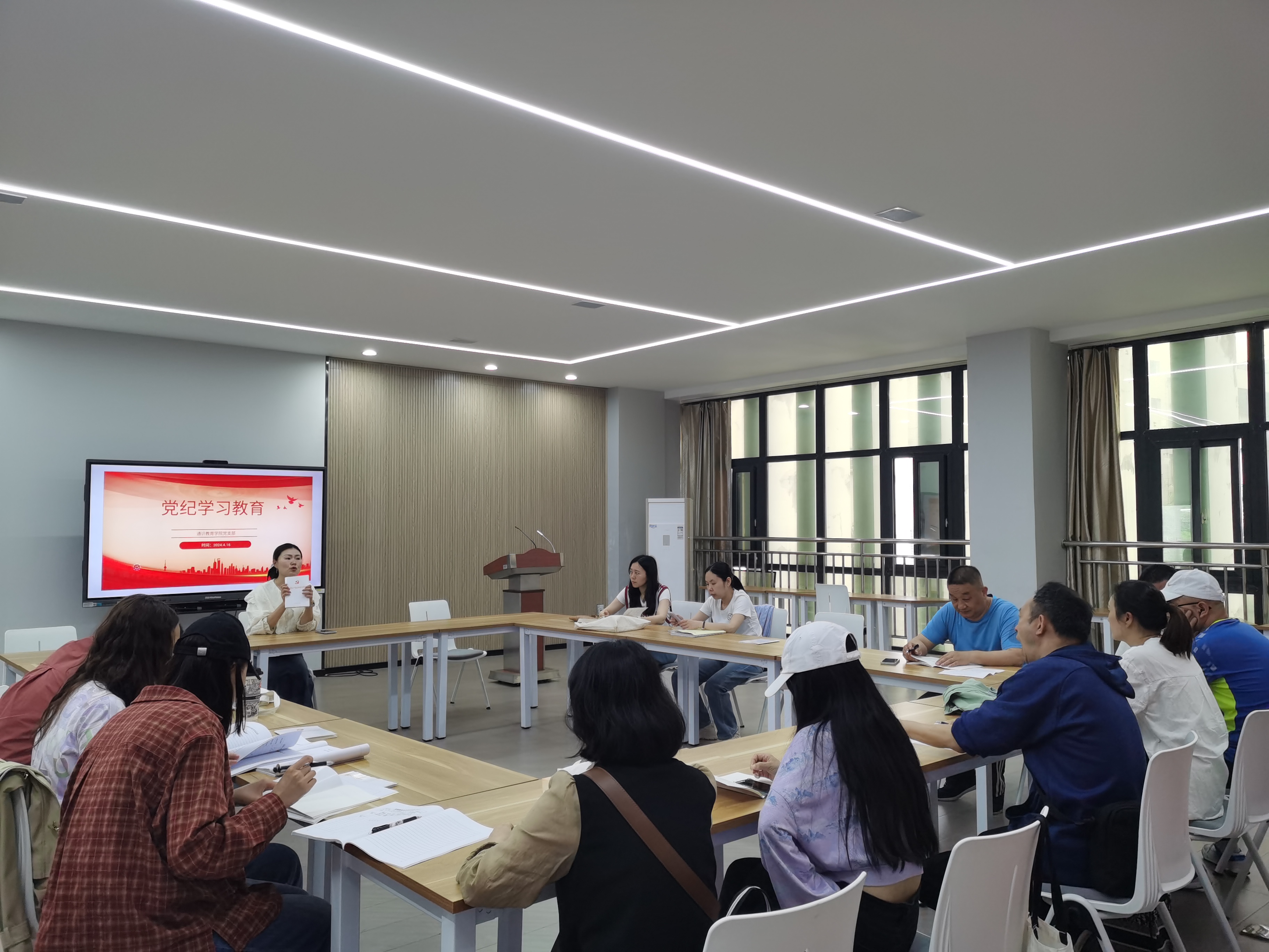 潘雪书记指出,组织开展党纪学习教育,是今年党建工作的一项重要政治任务,是加强党的纪律建设、推动全面从严治党向纵深发展的重要举措。首先,她向全体党员明确指出本次学习的目标要求,希望各位党员认真学习《条例》,做到学纪、知纪、明纪、守纪,把遵规守纪刻印在心,内化为日用而不觉的言行准则。接着,她详细讲述了此次学习活动的具体安排,从2024年4月开始,7月结束,以党员自学、党员代表领学、集中研讨、警示教育等多种形式展开。