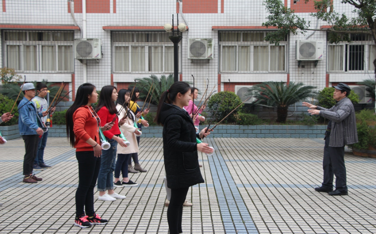 川东竹琴,距今已有200多年历史,是渝东地区最具特色的曲种之一,通过把这一极具艺术、科学和社会价值的非遗引进课堂,可以丰富校园音乐的形式和内容,传承非遗文化,促进学生全面发展。本学期,潘先生主要给学生讲授竹琴的演奏技巧,遵循竹琴“一打、二讲、三唱”的特点,按照打、讲、唱的步骤,扎实训练学生基本功。通过学习,让学生领略竹琴的独特魅力,让竹琴这一非物质文化遗产再放光彩。