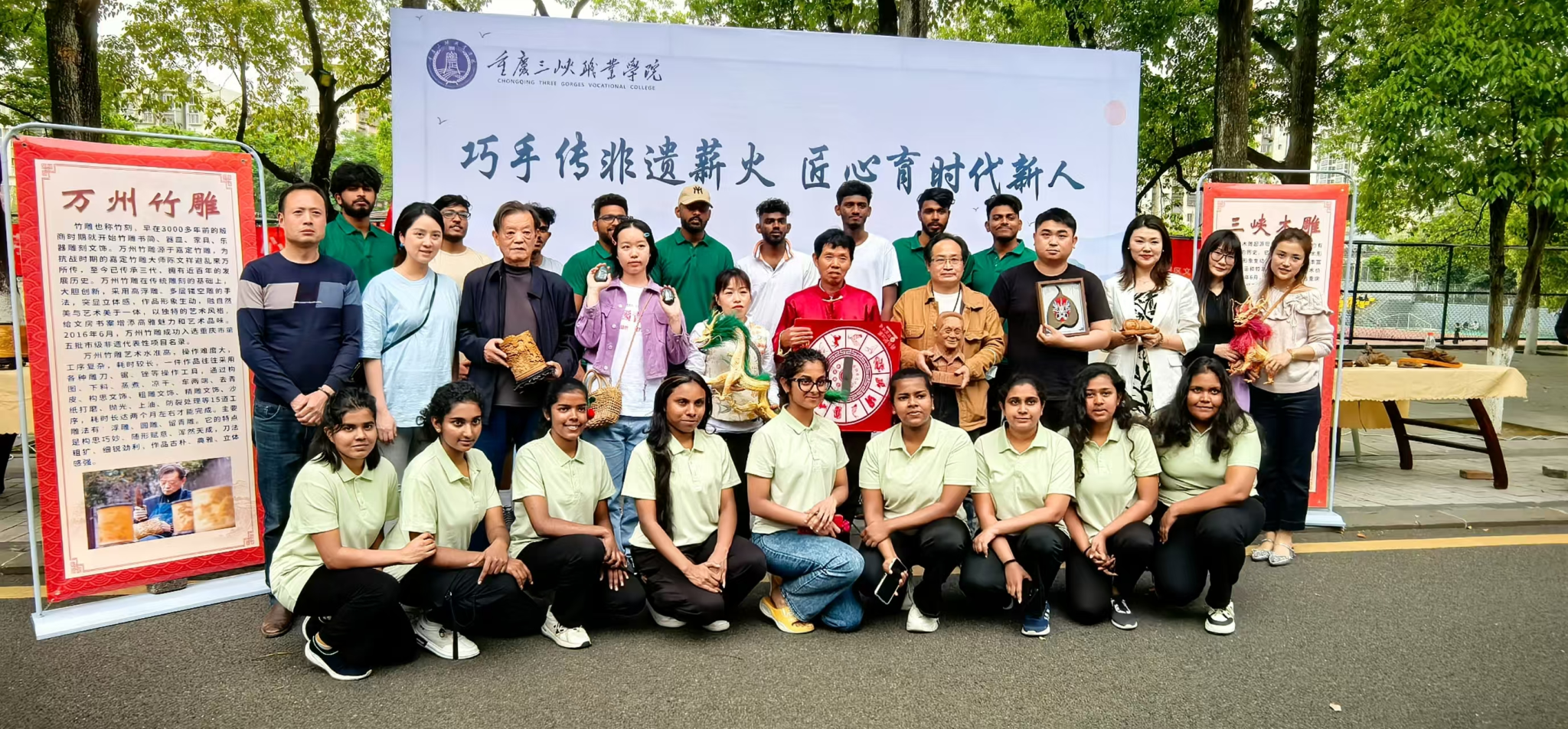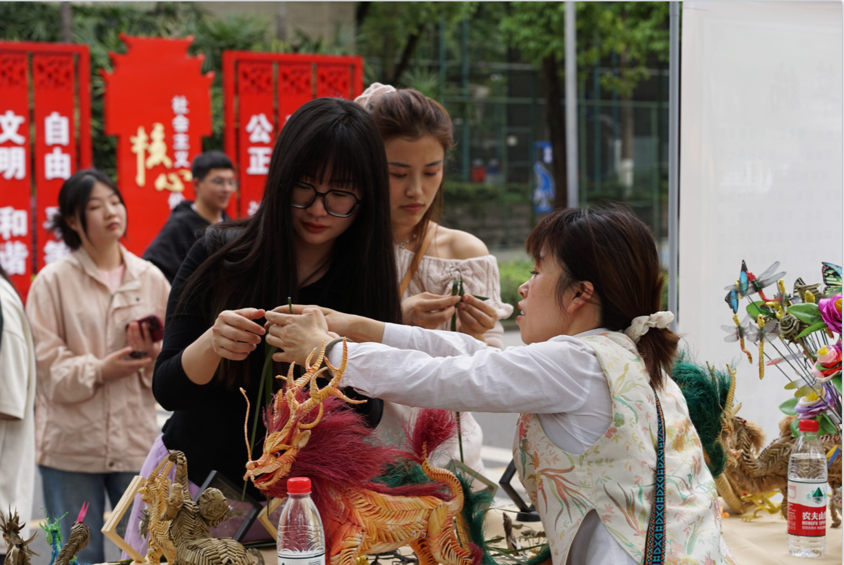 从万州竹雕的百年传承到糖画的市井烟火,非遗技艺在校园中焕发新生。活动不仅是一场文化盛宴,更是一堂生动的劳动教育课。值得一提的是,活动吸引了十多名斯里兰卡留学生参与,留学生们在泥塑和糖画体验中尤为投入,非遗文化在跨文化交流中绽放出独特光彩。未来,学院将持续搭建非遗传承平台,让年轻一代在触摸历史的过程中,成为文化薪火的传递者,也搭建起文化交流的桥梁,让更多人看到中国非遗的智慧与美。
