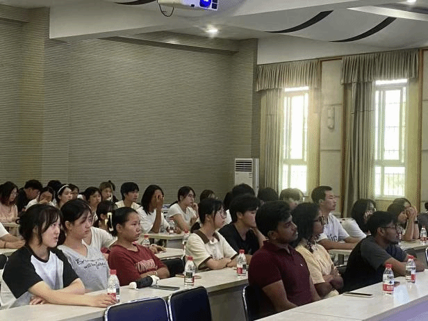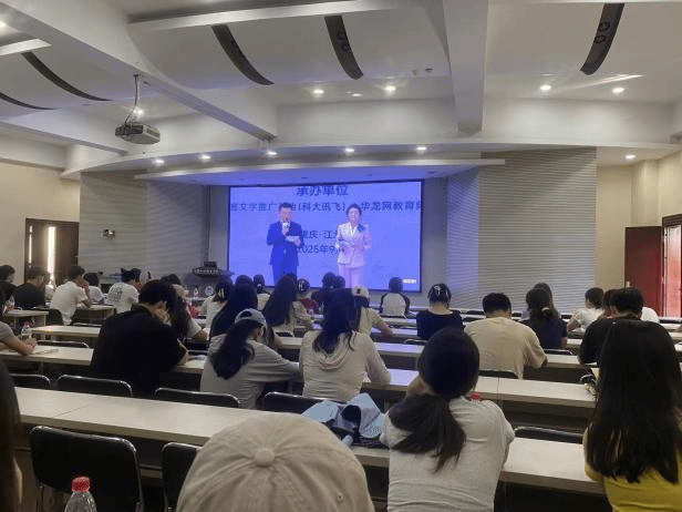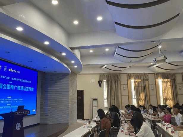 2025年9月14日,我校90余名中外师生代表在博雅楼 207教室集体观看重庆市第 28 届全国推广普通话宣传周(以下简称 “推普周”)开幕式直播,共同感受普通话推广的时代价值与文化底蕴。