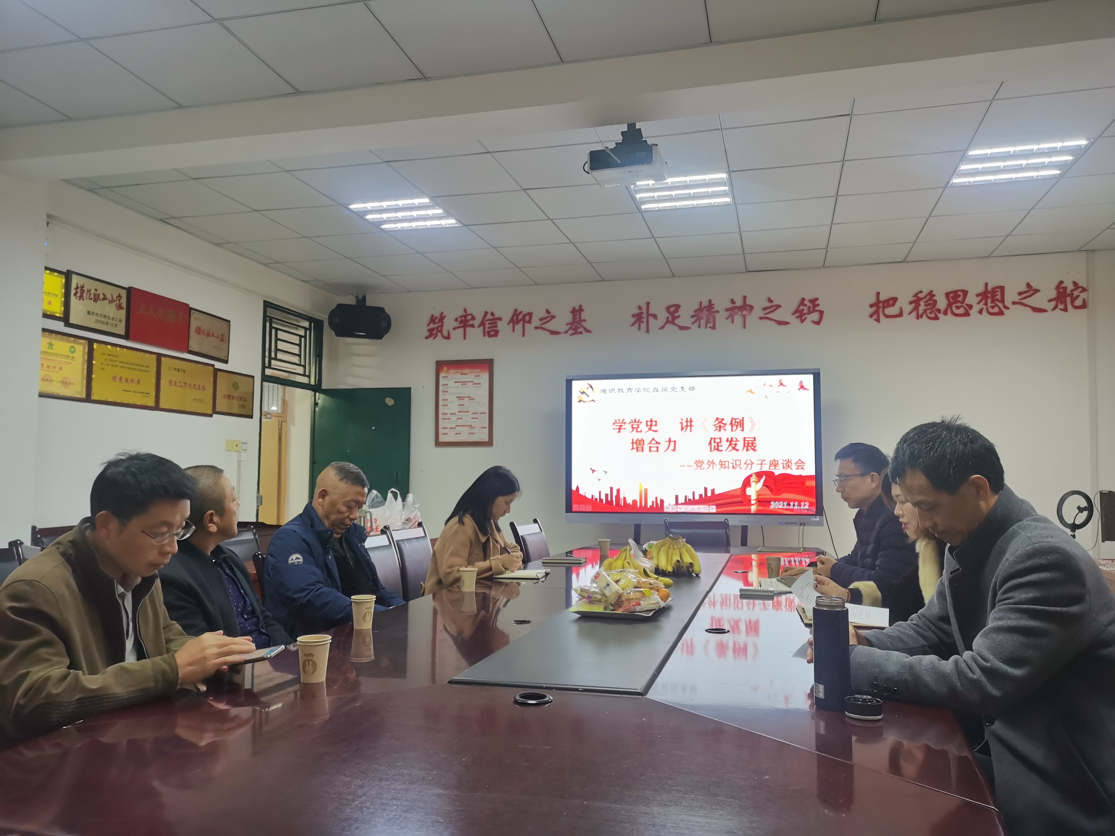 2021年11月12日上午,通识教育学院在信科楼503会议室召开了民族党派和统战团体人士座谈会,认真听取他们对学校发展的建议和意见。学院党委委员、统战部部长杨吉林同志参会并指导工作。会议由通识教育学院书记潘雪主持,民盟、九三学社、知联会等民主党派和统战团体教师参加座谈会,通识教育学院直属党支部宣传委员列席会议。