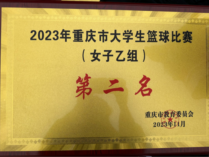 11月7日至12日,重庆市大学生(高职高专)比赛在重庆文理学院篮球馆举行。我校派出由姚证为领队,陈超、肖瑶为教练,各学院选取的学生队员组成的女子篮球队参赛。女子组参赛队伍一共18只,我队一路过关斩将,最终获得第二名的好成绩!