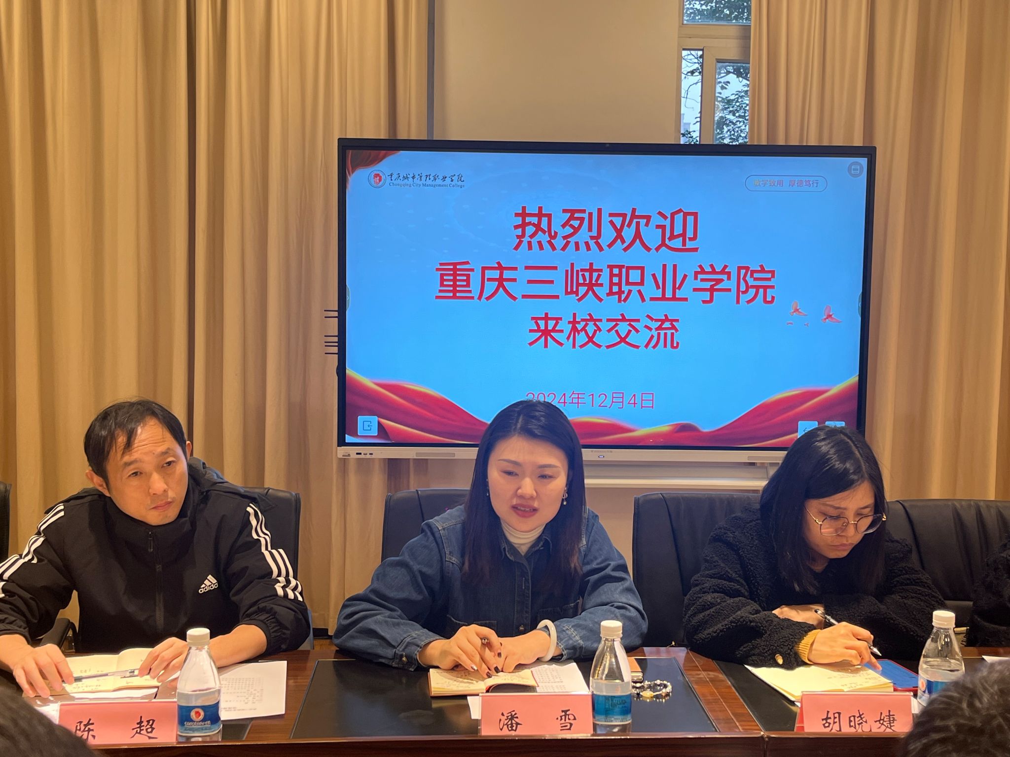 2024年12月4日下午,我院党支部副书记、副院长潘雪一行9人到重庆城市管理职业学院通识教育学院考察。双方在敏学楼A2会议室进行座谈交流。