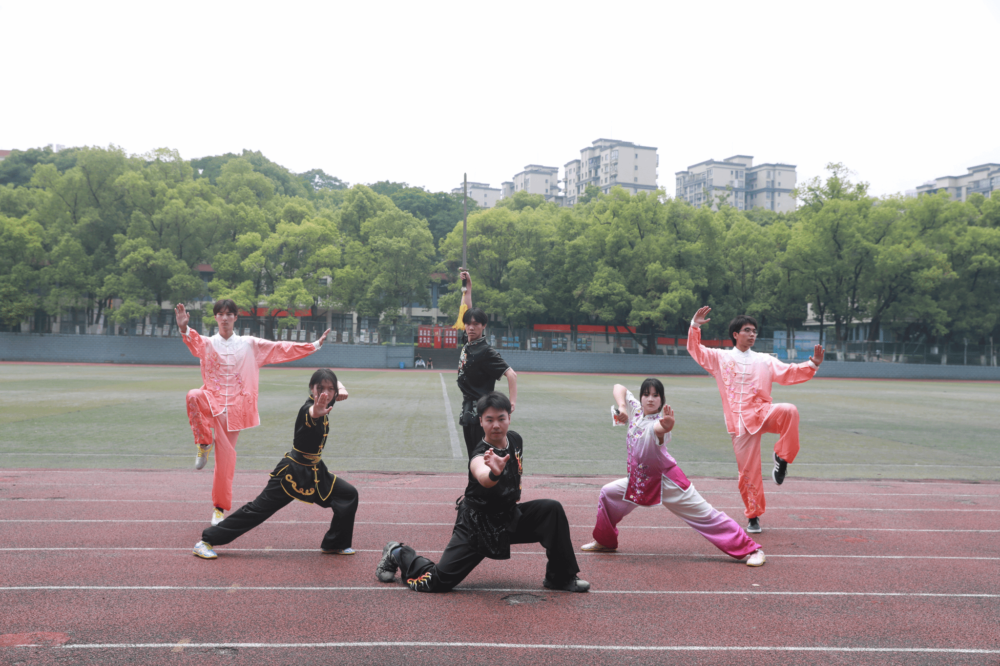 为激励士气,校武术队献上了一场精彩的表演。队员们动作整齐划一、刚劲有力,展现出了精湛的武术技艺和良好的精神风貌。体育教研室主任陈超在观看表演后表示,武术讲究 "内外兼修",不仅需要强健的体魄,更需要坚韧的意志和专注的精神,这与竞技体育追求卓越的精神不谋而合。他希望全体运动员能够将这种专注与坚韧带到赛场上,在比赛中发挥出最佳水平。