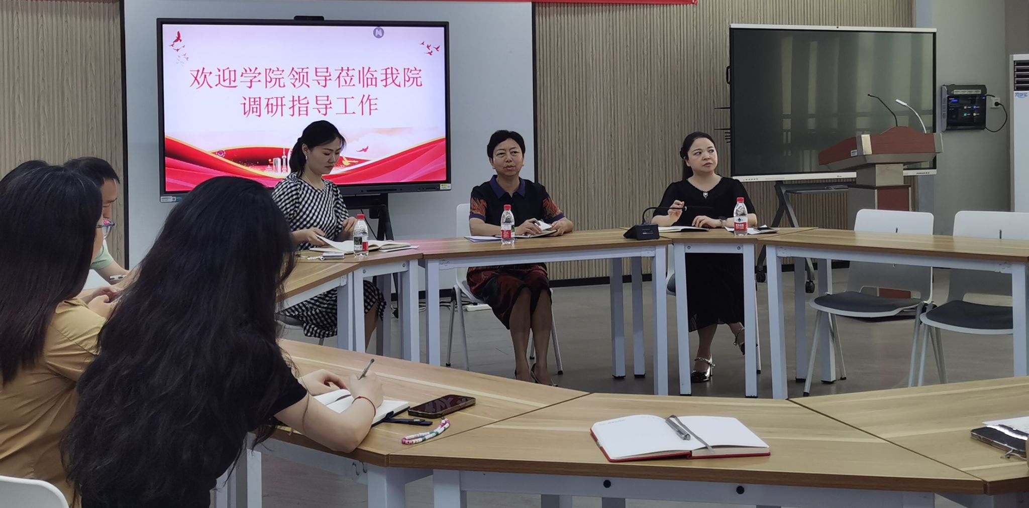 为进一步推动全校各级党组织扎实开展深入贯彻中央八项规定精神学习教育,聚焦学院各项事业高质量发展和提升基层高效能治理水平,6月19日,党委副书记杨梅、学生处副部长卢文凤深入通识教育学院开展调研并召开座谈会。座谈会在奥训楼404会议室举行,通识教育学院党支部委员会委员、部分教研室主任、教师代表一同参加会议。