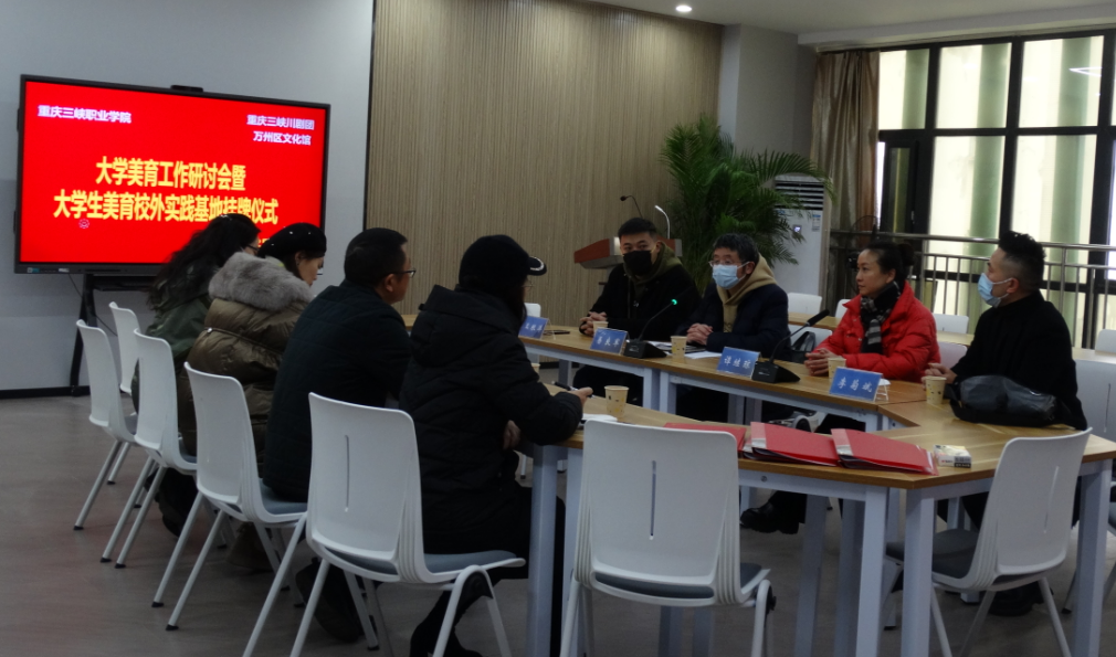 为深入贯彻习近平总书记关于学校美育工作重要指示精神和全国教育大会精神,积极落实教育部《关于切实加强新时代高等学校美育工作的意见》等文件精神,进一步提高我校师生审美和人文素养。2022年12月29日,重庆三峡川剧团团长谭继琼、万州区文化馆副馆长易良军领队来到我校开展美育工作研讨及美育实践基地授牌。