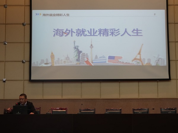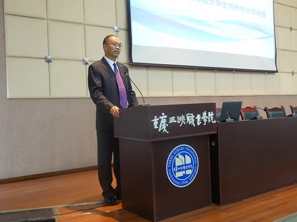 为进一步拓宽海外就业市场,促进我校大学生赴海外就业,服务“一带一路”人才输转,10月15日中午,我校大学生海外就业宣讲会在学术报告厅举行。重庆市商务委员会二级调研员王明玉,山东省商务厅调研员范遵智,山东省国际承包劳务商会副会长于建林,威海万方人才合作有限公司商务总监张宏宇,经济管理学院、招就处、国际交流处负责人及本次赴渝企业代表出席会议,经济管理学院2017级全体学生参加。宣讲会由经济管理学院党总支书记、院长赵琳主持。