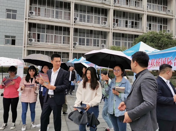 宣讲会结束以后,在博雅楼前举行了现场招聘会,同学们与参会相关企业工作人员就海外就业关心的问题进行了咨询和面对面的交流。