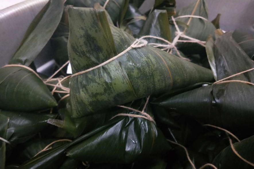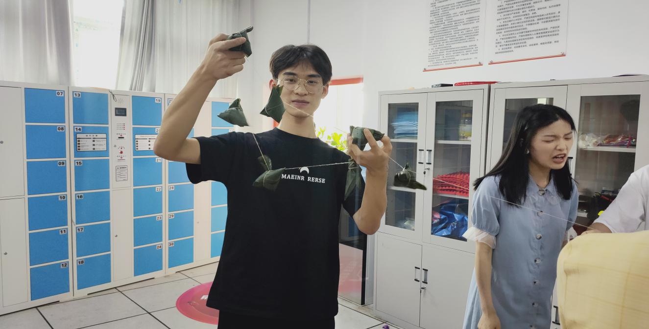 每个包粽子区域都围满了同学和老师,大家说说笑笑围站在一起,选粽叶、填芯馅、裹粽子……大家忙得热火朝天,活动现场准备了粽叶、蜜枣和糯米,大家分工合作,共同完成了准备工作。有的技术娴熟,包出的粽子有棱有角;有的新手上路,包出的粽子引发阵阵欢笑,热闹极了……一片粽叶、一颗蜜枣、一勺糯米,经过大家各具匠心的设计,很快变成了一颗颗形态各异的粽子。