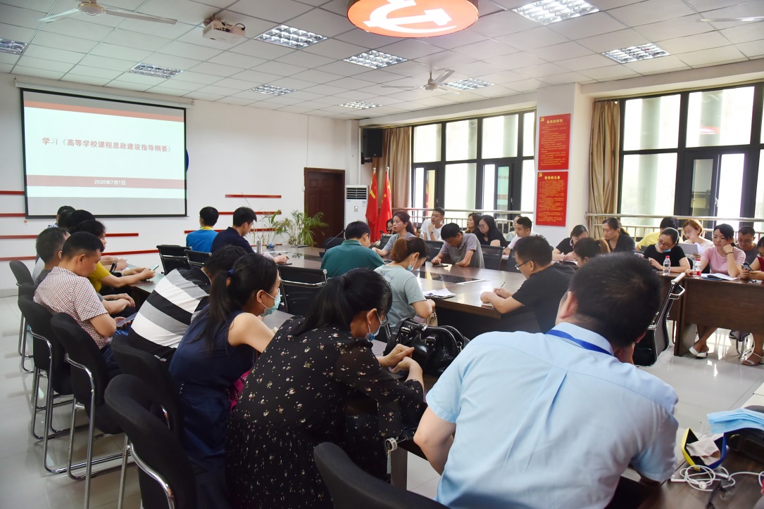 2020年7月1日下午,经济管理学院在奥训楼506会议室召开《高等学校课程思政建设指导纲要》专题学习,并结合学院课程思政建设进行研讨。会议由学院党总支书记、院长赵琳主持,特邀请马克思主义学院形势与政策教研室主任周润参会交流发言,经济管理学院全体教职工参加了会议。