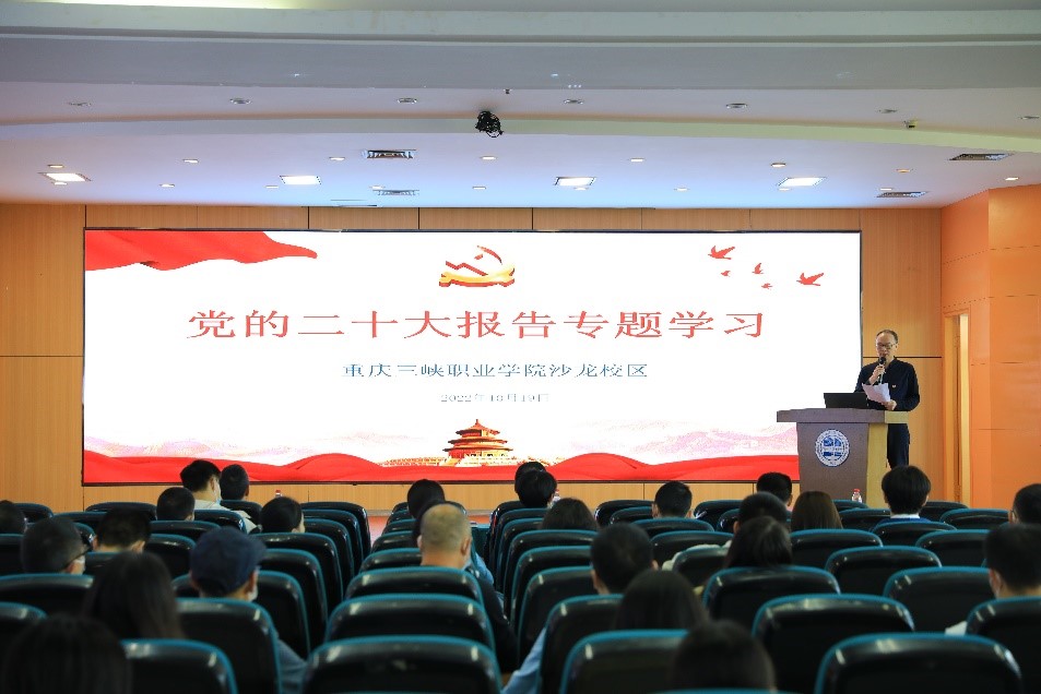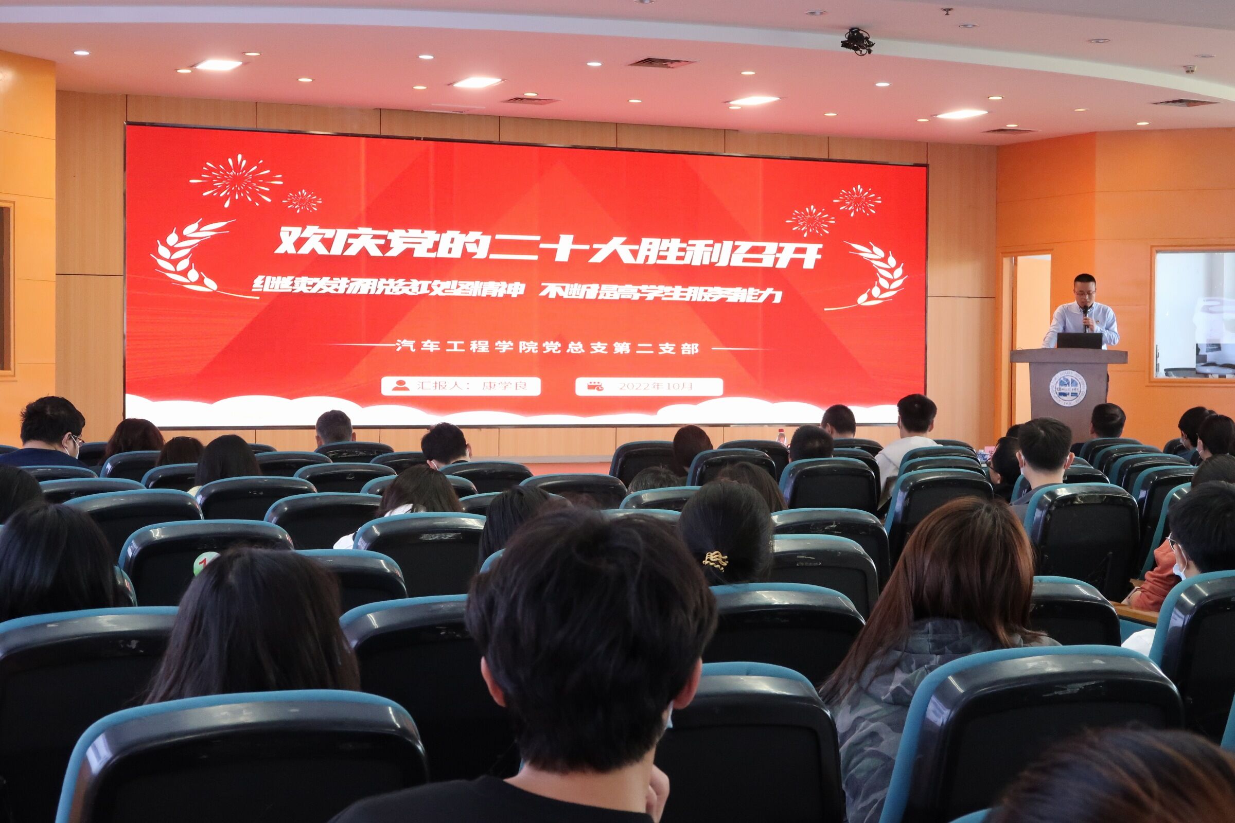 10月19日下午,学院党委在沙龙校区综合楼学术报告厅组织召开党的二十大报告专题学习会,学院党委书记陈章,党委委员、组织部部长熊辉俊,党委委员、宣传部部长姜荣,经济管理学院、汽车工程学院负责人,师生代表100余人参加了学习。会议由党委委员、组织部部长熊辉俊主持。
