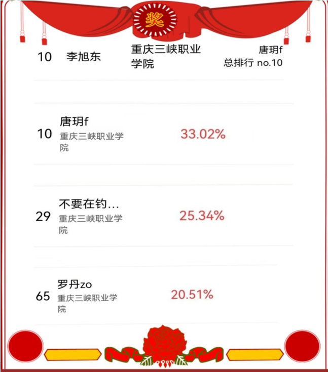 2022年10月10日至11月11日,我院2020级市场营销专业学生以线上方式参加了上海市高职高专经济类专业教学指导委员会主办的全国第一届大智慧杯金融精英赛。在市场营销专业李旭东老师的指导下,我院唐玥、周天杰、罗丹三名同学历经五周激烈酣战,在全国五千多名参赛学生中,脱颖而出,最终获得全国百强第十名、百强第二十九名、百强第六十五名的好成绩,李旭东老师荣获“最佳导师”荣誉称号。