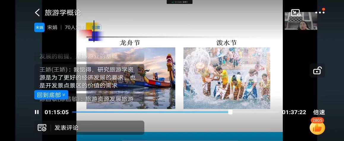 酒店管理专业的宋娟老师于2022年8月加入经管学院大家庭,作为线上教学的新手,她对线上教学有自己的独到理解。首先,她每次线上课堂都“露脸”。她坚信,只有自己与学生“脸对脸”,才能和学生心连心。她努力用自己的激情感染学生,极力去还原线下课堂。