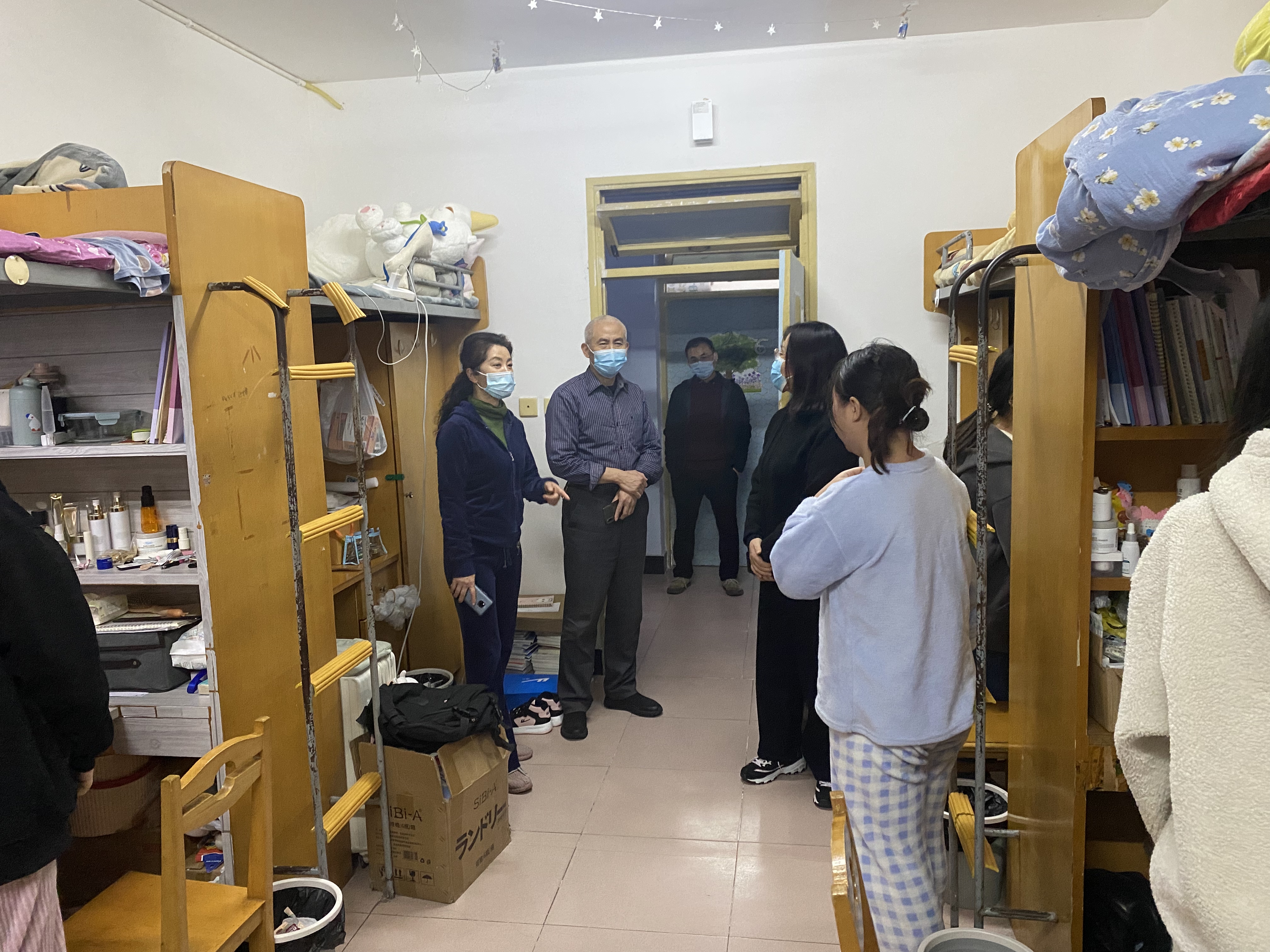 赵福奎副校长先后到经济管理学院辅导员办公室、学生公寓等处,看望了处于封闭管理期间值班值守的辅导员老师和同学们,详细了解师生在学习、生活上的需求和困难,对相关部门的后续工作提出了建议。赵福奎副校长勉励大家要精诚团结、攻坚克难,聚焦重点部位、关键环节,持续将各项疫情防控措施落地落实,压实安全责任、筑牢安全防线,切实保障好沙龙校区师生员工身心健康和校园安全稳定。