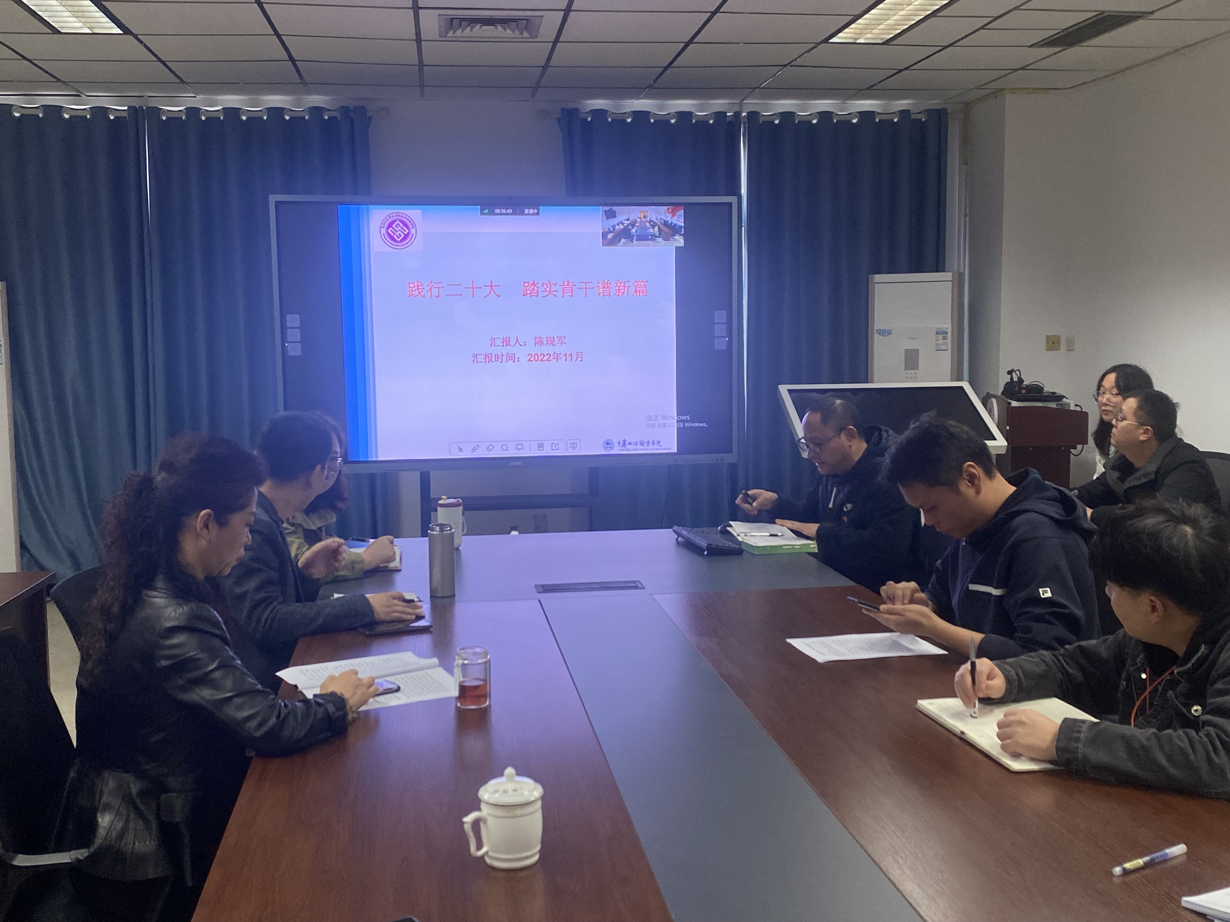学院党总支书记、院长赵琳围绕“大会概况、党的二十大的主题、党的二十大的主要成果、党的二十大报告起草过程”等方面内容进行了系统全面的解读。赵琳书记强调,全体教职员工要把学习宣传贯彻党的二十大精神作为当前和今后一个时期首要政治任务,全面学习、全面把握、全面落实,认真抓好学习培训,学原文、悟原理,完整准确全面领会,推动党的二十大精神入脑入心,引领全院师生踔厉奋发、勇毅前行,为推动学院高质量发展贡献力量。
