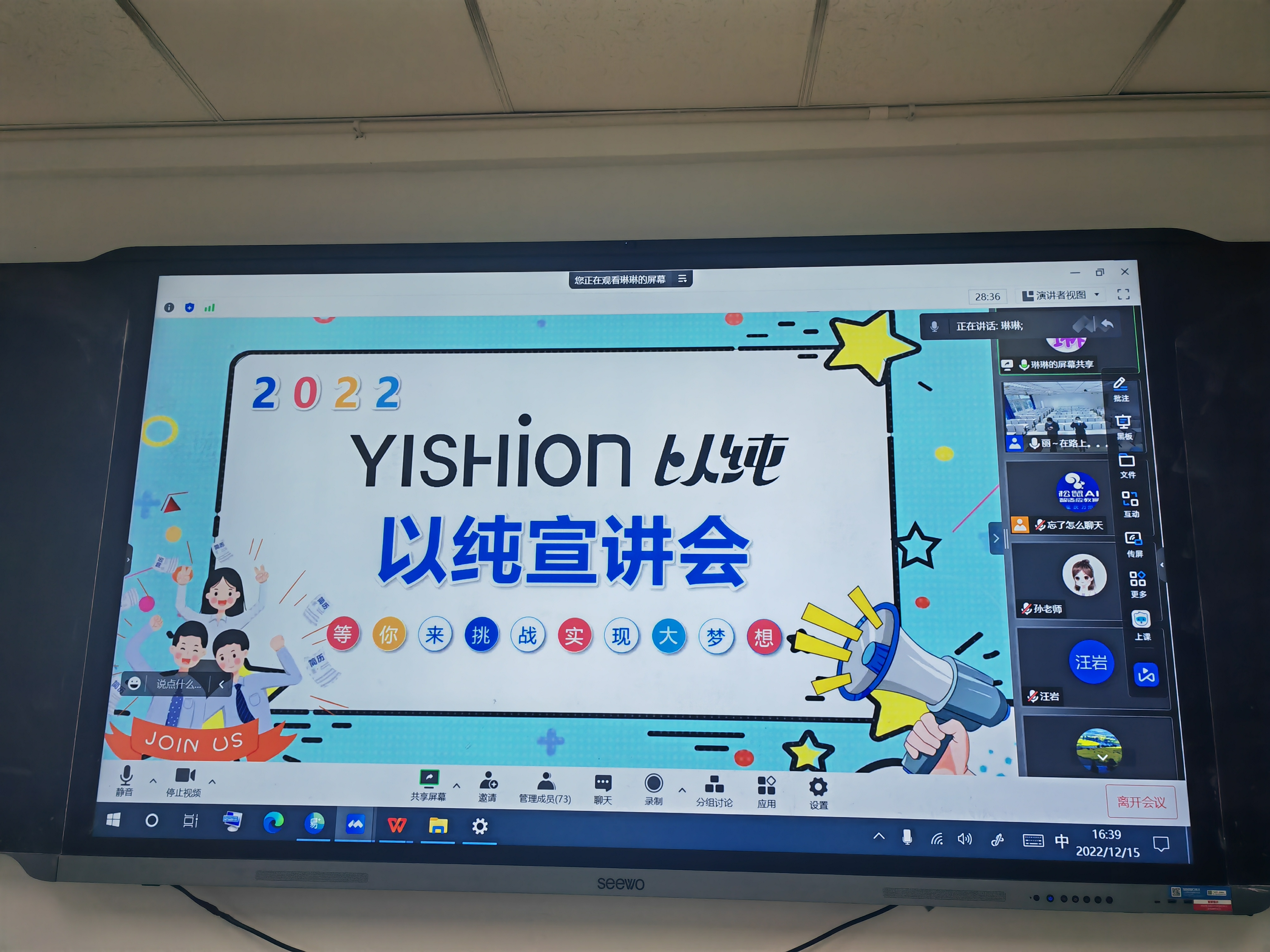 “同学们认真对待岗位实习环节,顺利完成这一必修课程。”市场营销专业教研室主任宋丽丽向同学们介绍了毕业实习的基本情况,强调实习实训的必要性和重要性,详细讲解毕业实习工作相关要求,以及离校外出实习所需材料如何填写并提交。以纯的喻明琳经理重点介绍了以纯的整体情况、企业文化、发展前景、所需岗位、员工培养方式、福利待遇、住宿情况、人才培养模式及招聘要求。