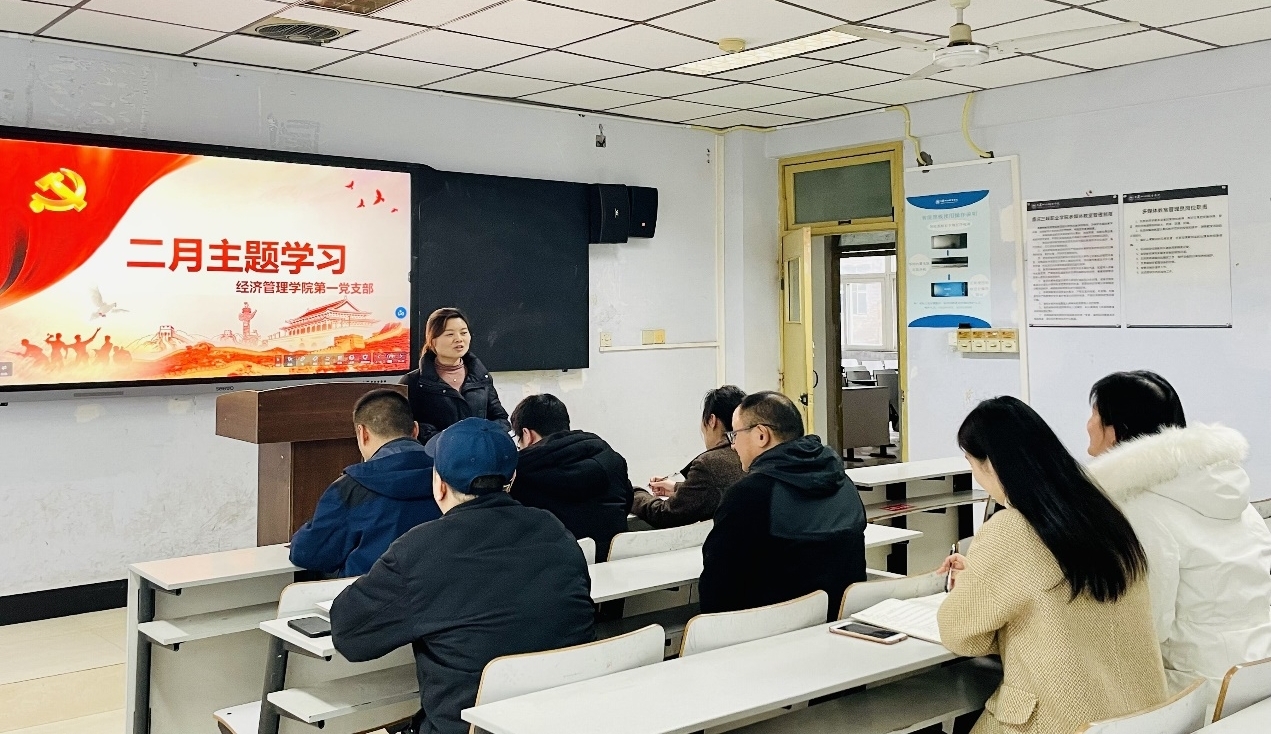 2月21日下午,经济管理学院党总支第一党支部在沙龙校区综合楼307教室开展2月份“三会一课”和主题党日活动,会议由支部书记宋丽丽主持,全体党员参加学习。