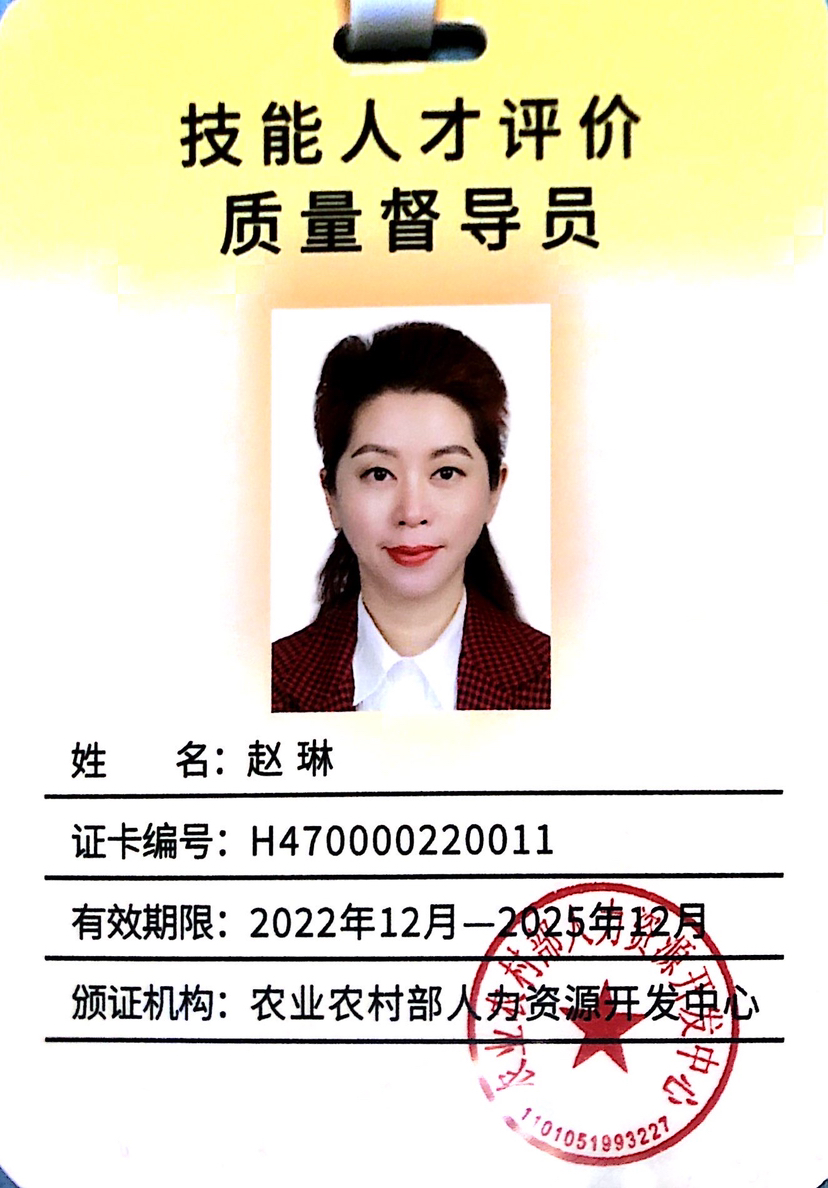 为提高技能人才评价质量督导,做好职业技能人才评价管理工作,近日,重庆三峡职业学院经济管理学院党总支书记、院长赵琳取得由农业农村部人力资源开发中心颁发的技能人才评价质量督导证。