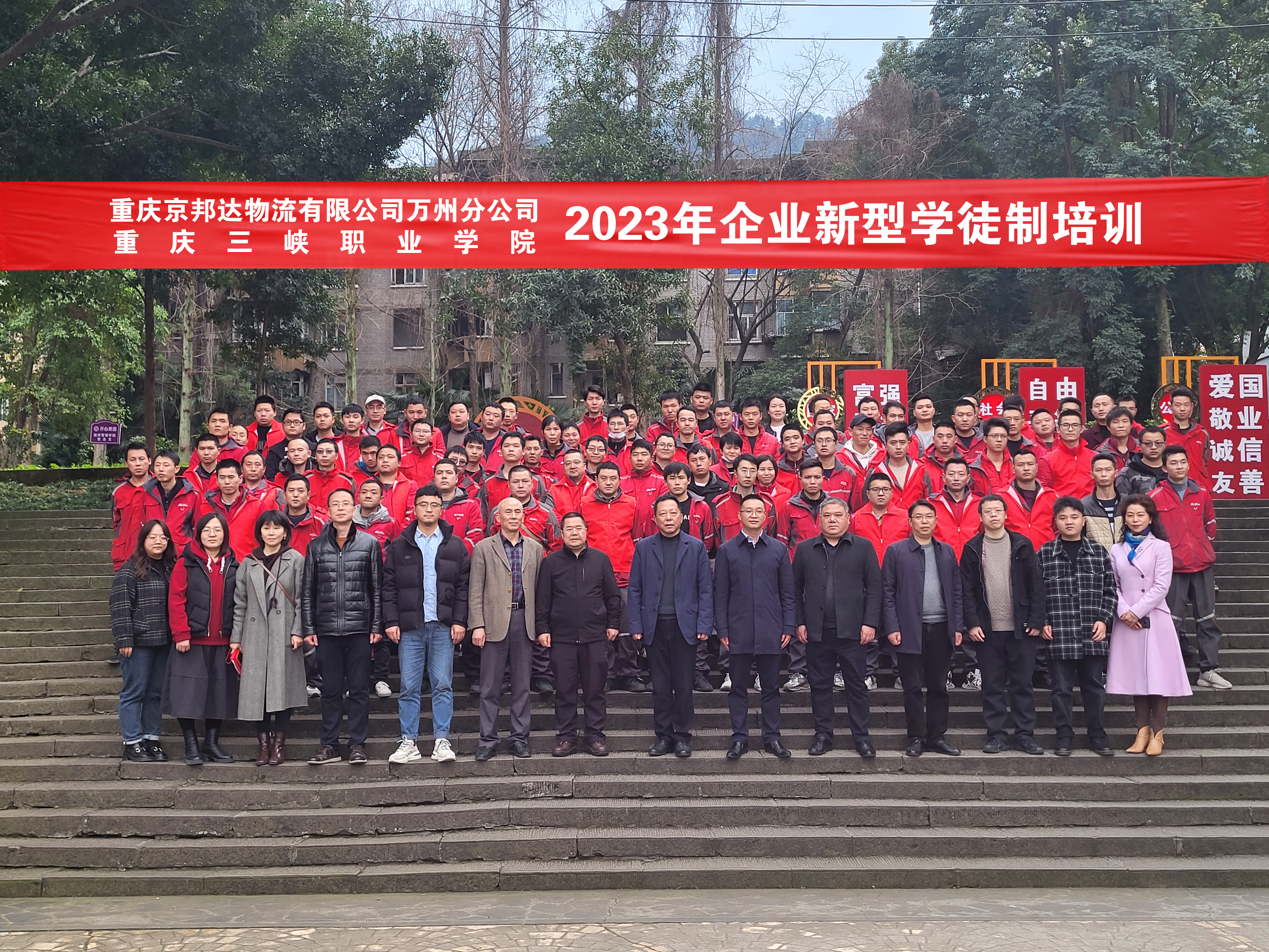 随后,万州区人社局局长雷传亮宣布“重庆三峡职业学院、重庆市京邦达物流有限公司万州分公司2023年快递员”新型学徒制正式开班。