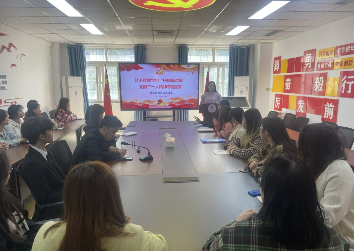 党的二十大报告鼓舞人心、催人奋进。经济管理学院党总支将始终坚持把学习贯彻党的二十大精神作为首要政治任务,持续在教师与学生群体中推进党的二十大精神宣讲巡讲及社会实践活动,让党的二十大精神在三职院校园“落地生花”,将学习宣传贯彻党的二十大精神激发出的热情和干劲转化为奋力推进学校高质量发展的强大动力。