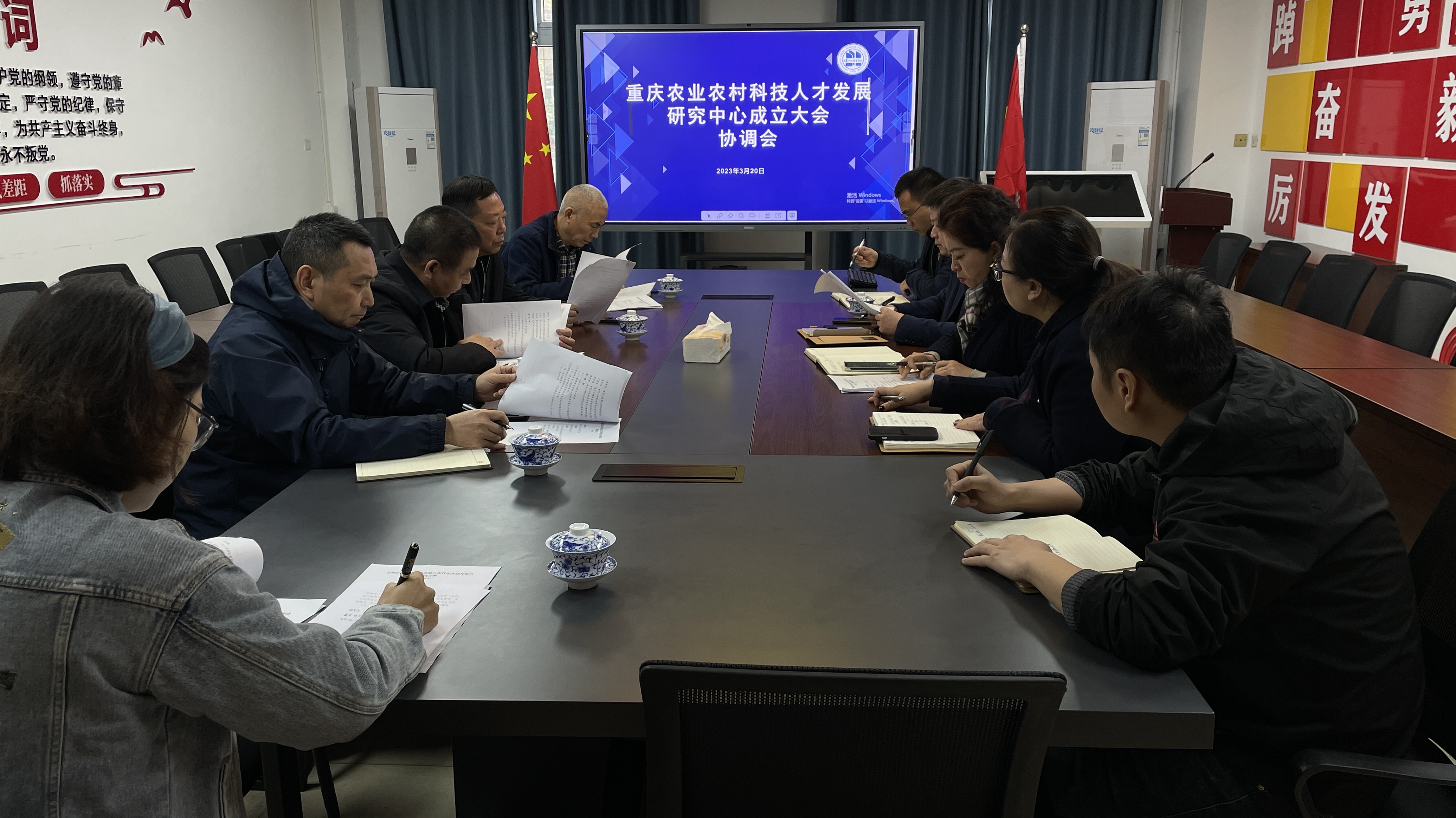 3月21日上午,重庆三峡职业学院党委书记陈章,学校党委委员、副校长赵福奎,万州区科协书记罗重生一行到沙龙校区就重庆农业农村科技人才发展研究中心成立大会及揭牌仪式相关事宜进行现场协调和工作指导。学校党委宣传部、党政办、经管学院相关负责人参加此次筹备会.