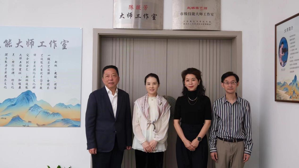 为进一步提高学生就业质量、拓展学生就业渠道,推进学院产教融合、校企合作工作深入开展。4月19日下午,学院党委书记陈章到沙龙校区驻校企业素业茶院考察交流并为陈燚芳大师工作室揭牌。