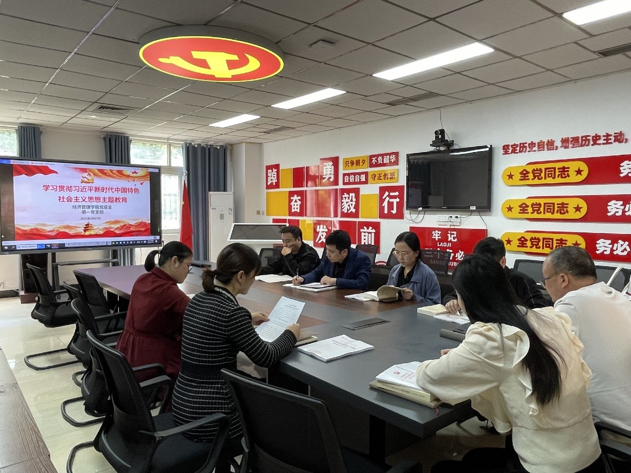 为深入贯彻学习习近平新时代中国特色社会主义思想和党的二十大精神,4月27日中午,经济管理学院党总支第一党支部在沙龙校区综合楼2楼会议室开展了学习贯彻习近平新时代中国特色社会主义思想主题教育学习会,支部全体党员教师参加学习,会议由支部书记宋丽丽主持。