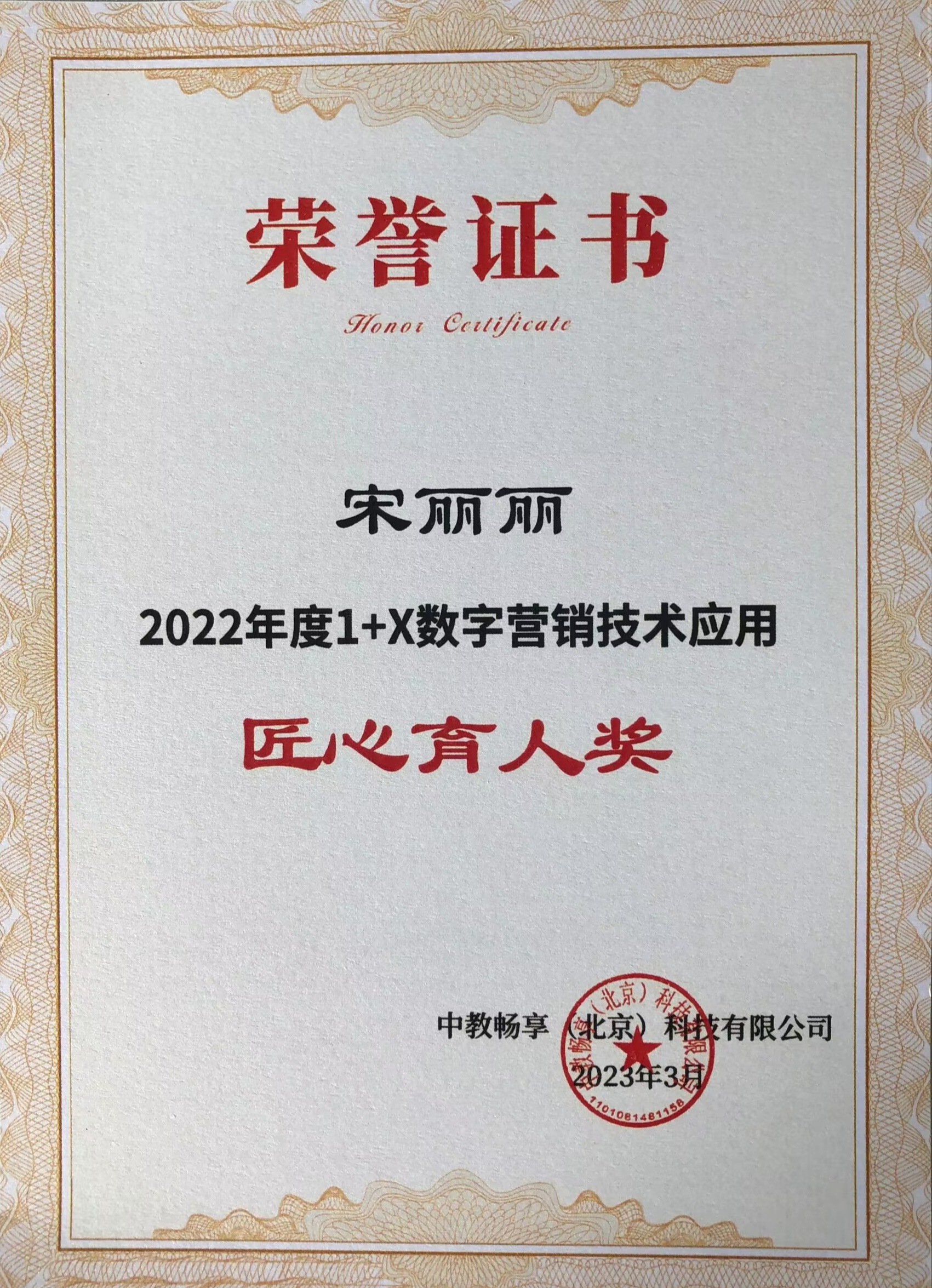 近日,1+X数字营销技术应用评价组织中教畅享(北京)科技有限公司对在2022年“1+X数字营销”证书推进工作中做出重要贡献的试点院校与个人进行了集中表彰。我校在1+X数字营销技术应用工作中的卓越表现和突出成绩,被授予“书证融通奖”,经济管理学院副院长陈现军被授予“杰出贡献奖”,宋丽丽老师被授予“匠心育人奖”。