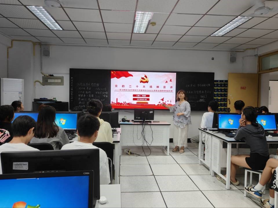 为深入学习贯彻党的二十大精神,促进党员认识再提升、再强化,引导青年同学听党话、跟党走。6月15日,经济管理学院党总支第一党支部在沙龙校区综合楼802实训室开展党的二十大精神及主题教育专题党课宣讲,持续推动学习宣传党的二十大精神和主题教育走深走实。本次专题党课由支部书记宋丽丽宣讲,支部全体党员师生和入党积极分子参加了活动。
