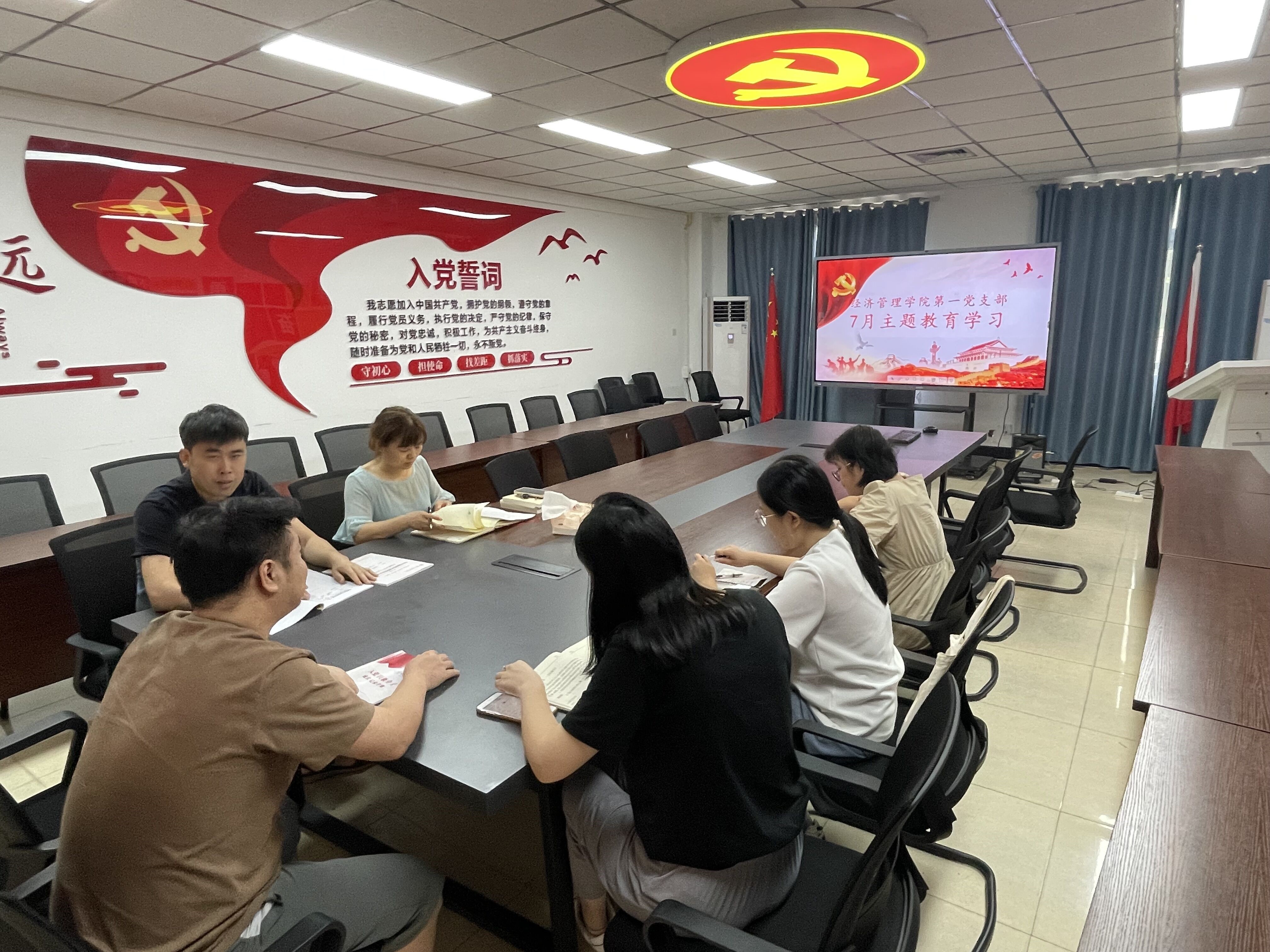 7月6日,经济管理学院党总支第一党支部在沙龙校区综合楼会议室开展七月“三会一课”主题教育学习,支部全体党员教师参加了学习。
