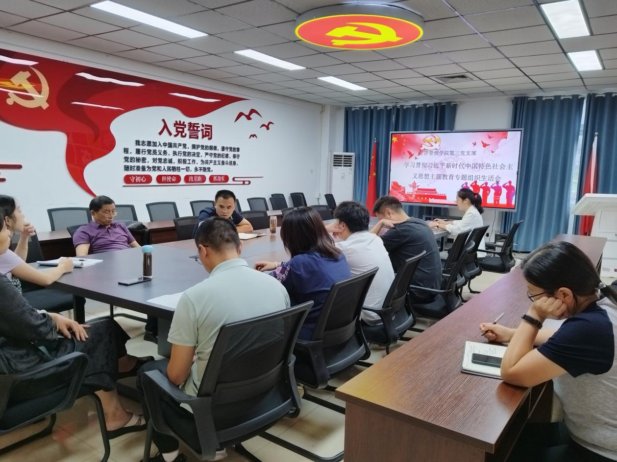 9月12日,经济管理学院党总支第三党支部在沙龙校区综合楼二楼会议室开展学习贯彻习近平新时代中国特色社会主义思想主题教育专题组织生活会,会议由支部书记孙立芳主持,支部全体党员教师参加,汽车工程学院专职组织员向慧萍同志列席。
