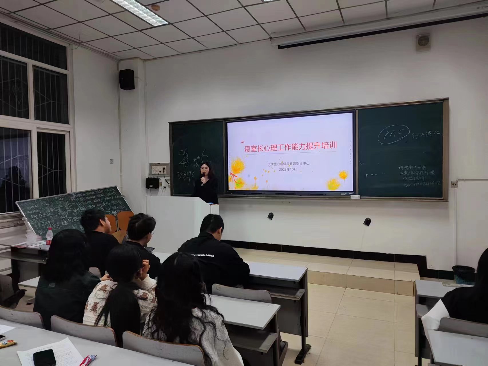 此次培训依托我院心理辅导工作站,各班级从“营造良好寝室关系”、“开展朋辈心理辅导”及“心理危机发现与干预”等方面对各班寝室长进行了培训指导,各班级还围绕“用心交流、理性沟通”、“增强班级凝聚力”等方面开展了心理教育班会活动。