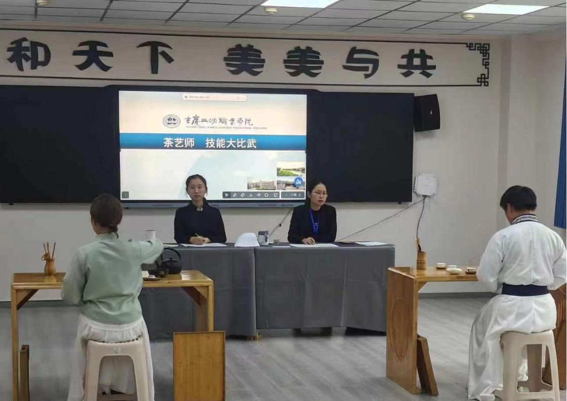 10月24日—28日,在重庆市人社局、万州区人社局的大力支持下,由重庆市赵琳茶艺首席大师工作室承办,重庆市高技能人才培养副基地、重庆市乡村驿站(茶艺驿站)、重庆三峡职业学院茶艺社团协办的茶艺师技能大比武在沙龙校区经济管理学院茶艺实训室成功举行。