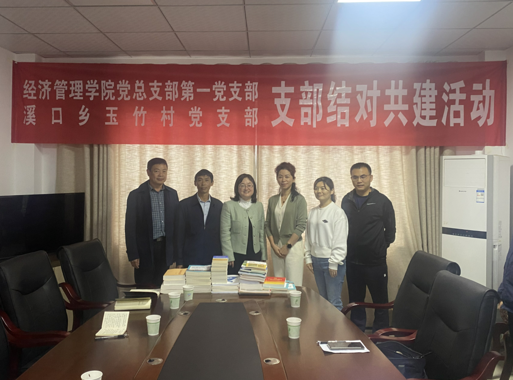 在玉竹村委会,第一党支部与玉竹村支部开展支部结对共建,赵琳书记及第一党支部全体党员同志与玉竹村党支部同志在会上围绕直播带货、技术服务、乡村振兴、返乡创业等方面进行交流座谈,并向玉竹村捐赠了党建、营销、直播技巧、数据统计分析等专业书籍。