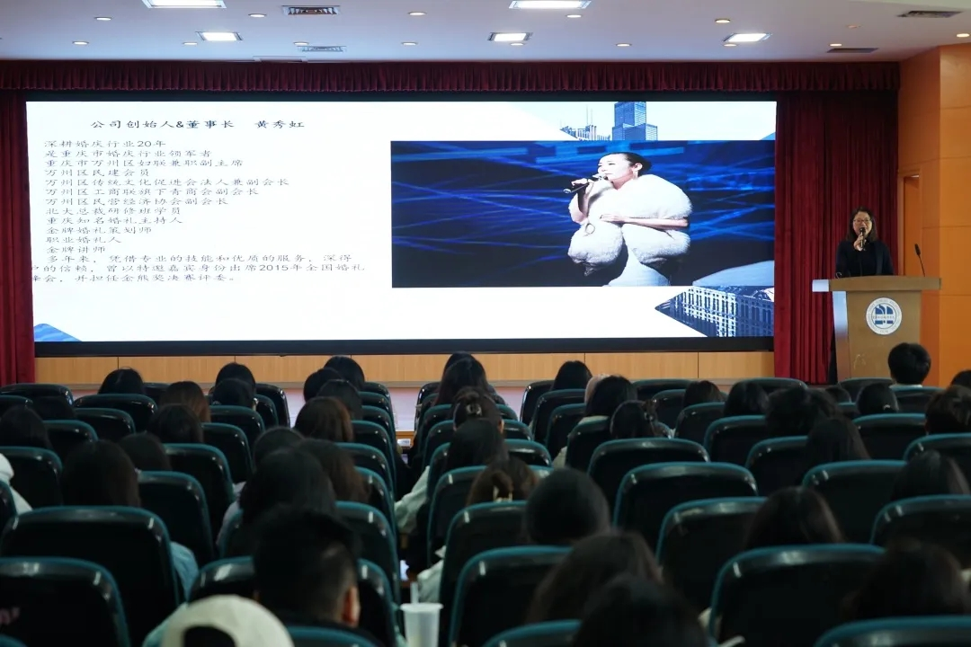 为深入学习贯彻习近平文化思想,增强师生学习与弘扬优秀传统文化的意识,12月2日,经济管理学院在沙龙校区举办中华优秀传统文化专题讲座,吸引众多同学参加,容纳500人的学术报告厅座无虚席。万州区传统文化促进会志愿者、重庆虹馆薇薇文化传媒有限公司文化副总裁黄秀凤向在场学子们分享了如何在校学习期间塑梦、追梦、圆梦,如何通过学习传播中华优秀传统文化提升自己的综合素养从而做好自身的职业规划、定位人生发展目标,成就自己的梦想。