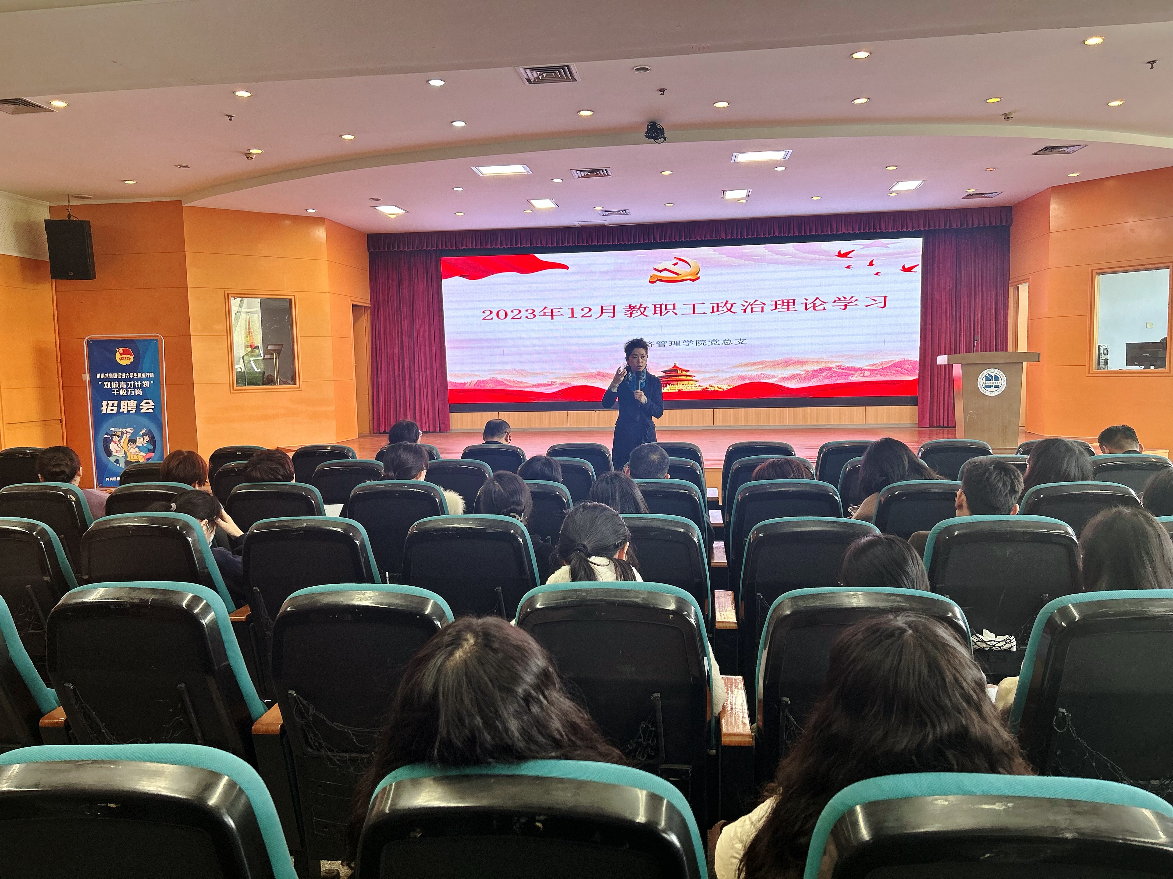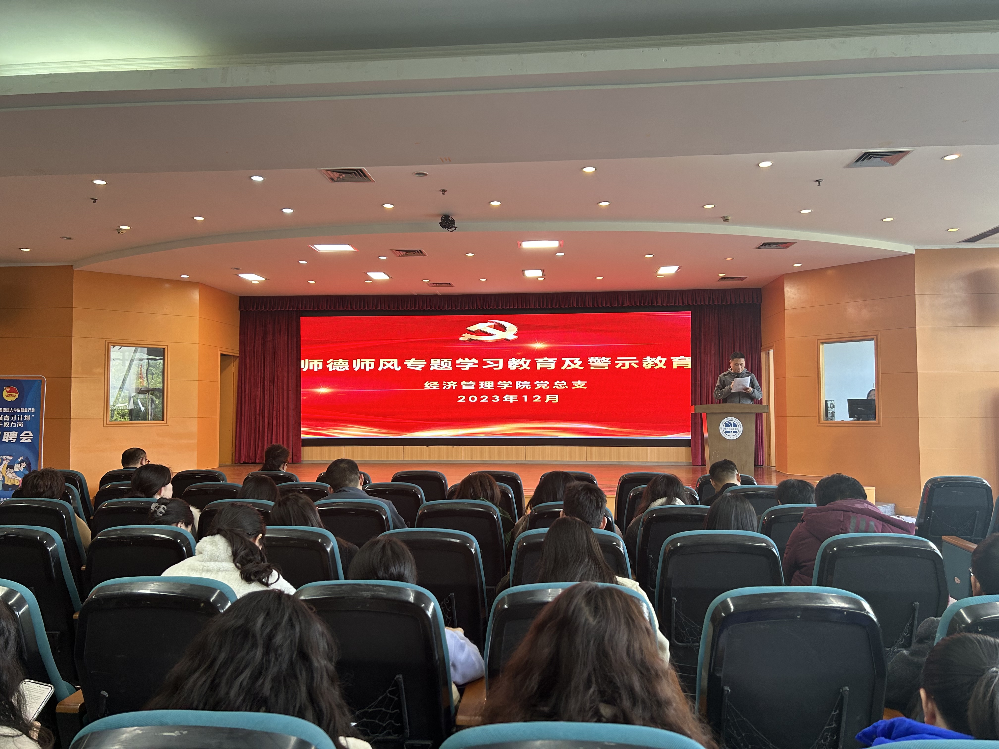12月13日中午,经济管理学院在沙龙校区综合楼学术报告厅开展了12月政治理论学习和师德师风警示教育,会议由党总支组织员李静主持,全体教职工参加学习。