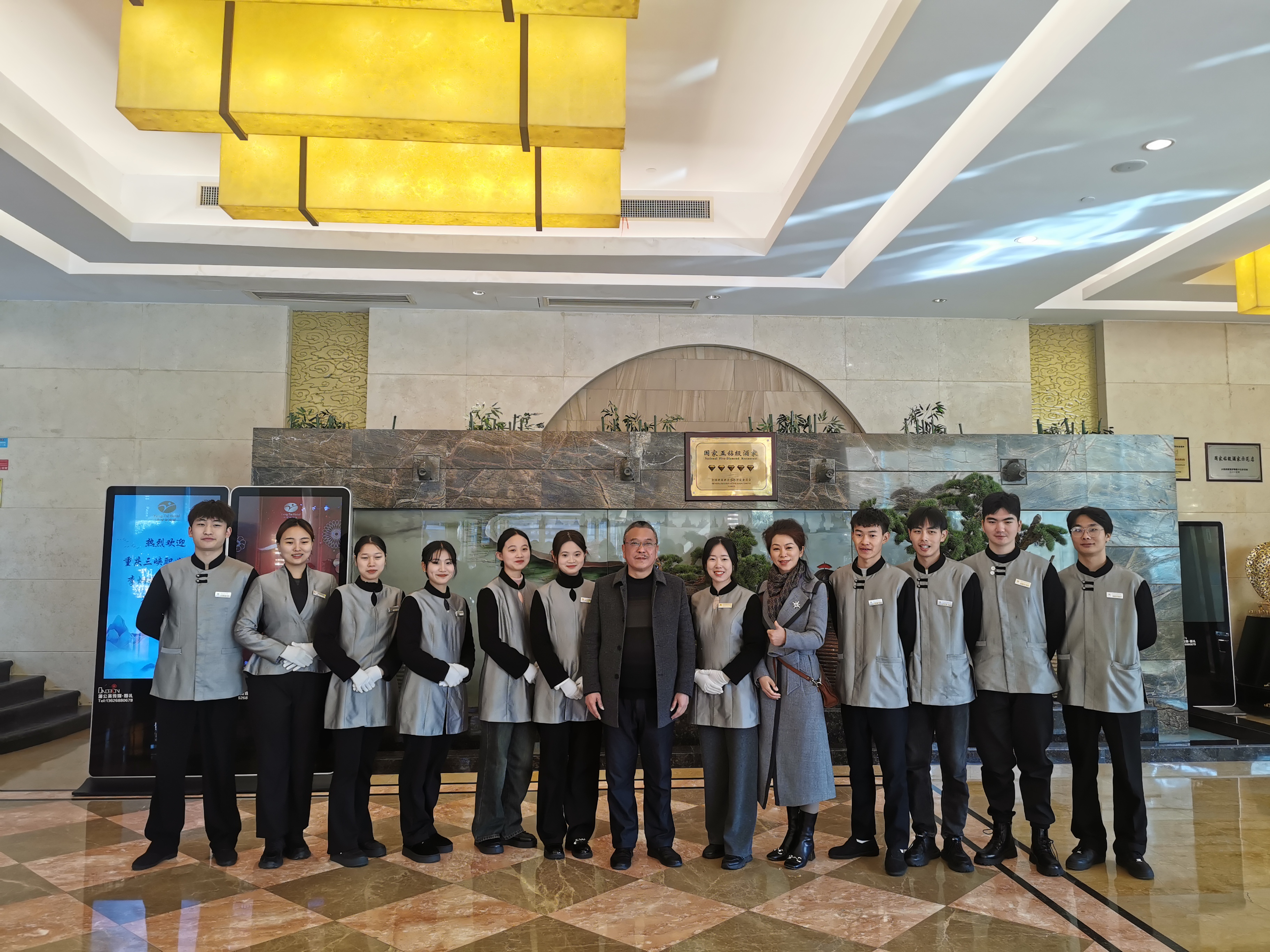 为进一步加强跨省实习管理,深化落实校企合作,切实关心和帮助学生实习成长,12月22日,学院院长李炯光带队赴浙江绍兴柯桥永泰柯岩酒店和永泰望湖酒店走访看望60余名参加岗位实习的2022级酒店管理与数字化运营专业实习生,党政办、教务处、人事处、经济管理学院等相关部门负责人陪同看望。