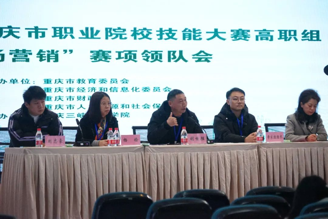 重庆三峡职业学院教务处副处长杨俭,经济管理学院党总支书记、院长赵琳,重庆市教科院特派赛项联系人胡世胜,技术支持企业、全体领队、指导教师、参赛选手及我校相关工作人员参加赛项领队会,会议由赛项联系人胡世胜主持。