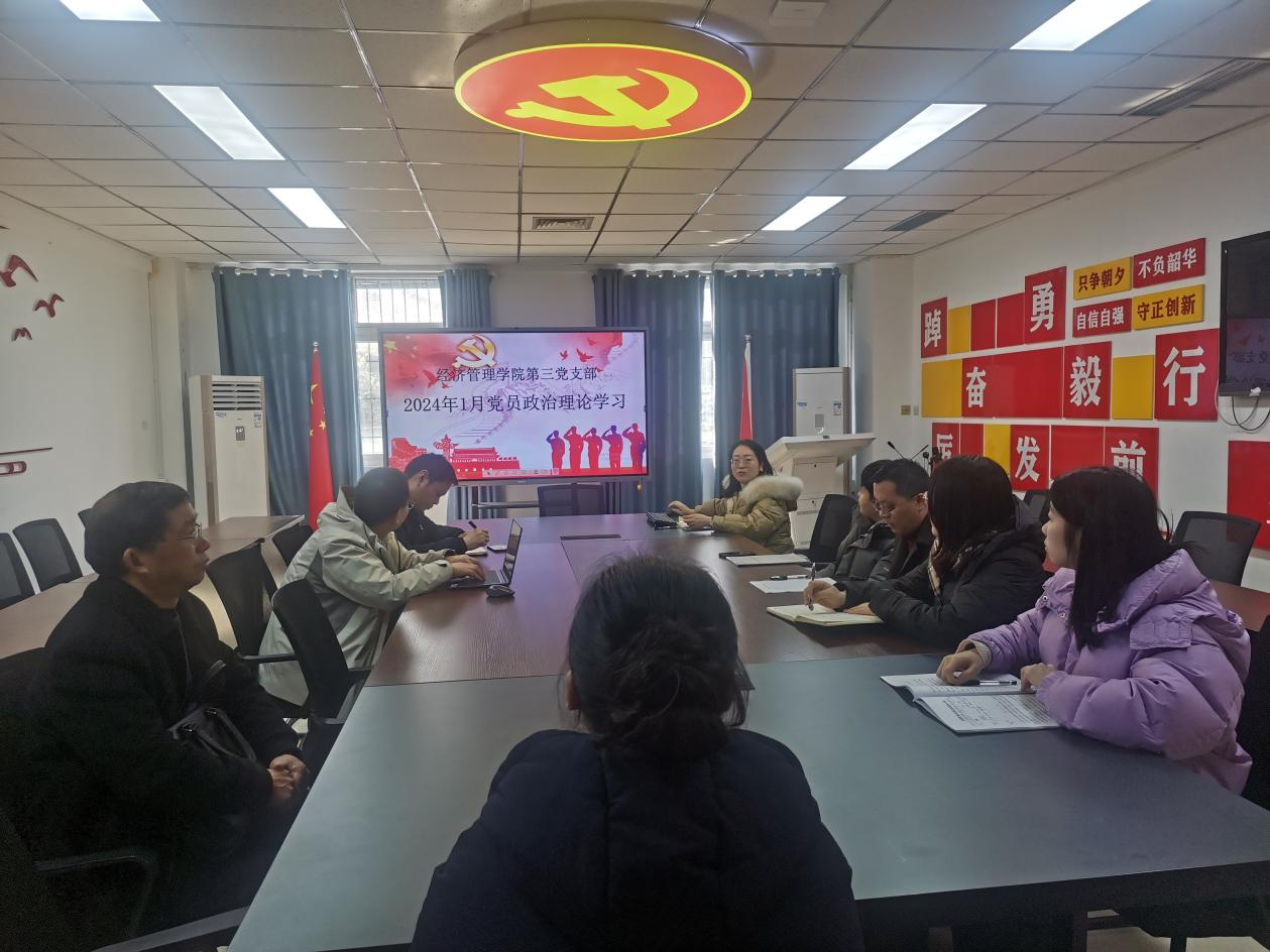 1月9日下午,经济管理学院党总支第三党支部在沙龙校区综合楼二楼会议室开展1月政治理论学习,会议由支部书记孙立芳主持,支部全体党员参加学习。