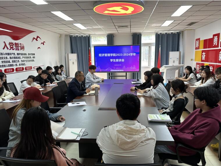 3月29日中午,为了更好地了解学生的学习与生活状态,倾听学生的心声,经济管理学院精心组织了一场学生座谈会。此次座谈会旨在搭建一个师生交流的平台,促进学生之间的沟通与合作,共同推动学院的和谐发展。经济管理学院副院长陈现军、教学科教师代表以及各年级的学生代表参与了座谈会。