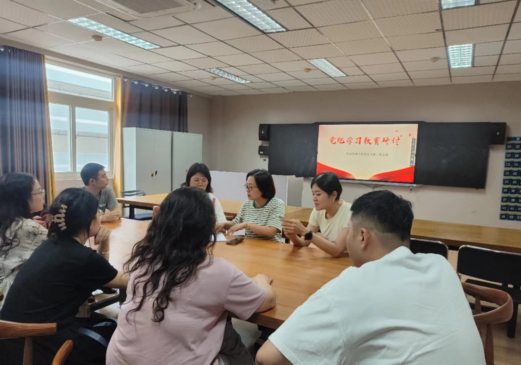 7月1日上午,经济管理学院第二党支部在沙龙校区综合楼西餐实训室开展第六次党纪专题学习,会议由支部书记潘琪主持,全体党员参加学习。