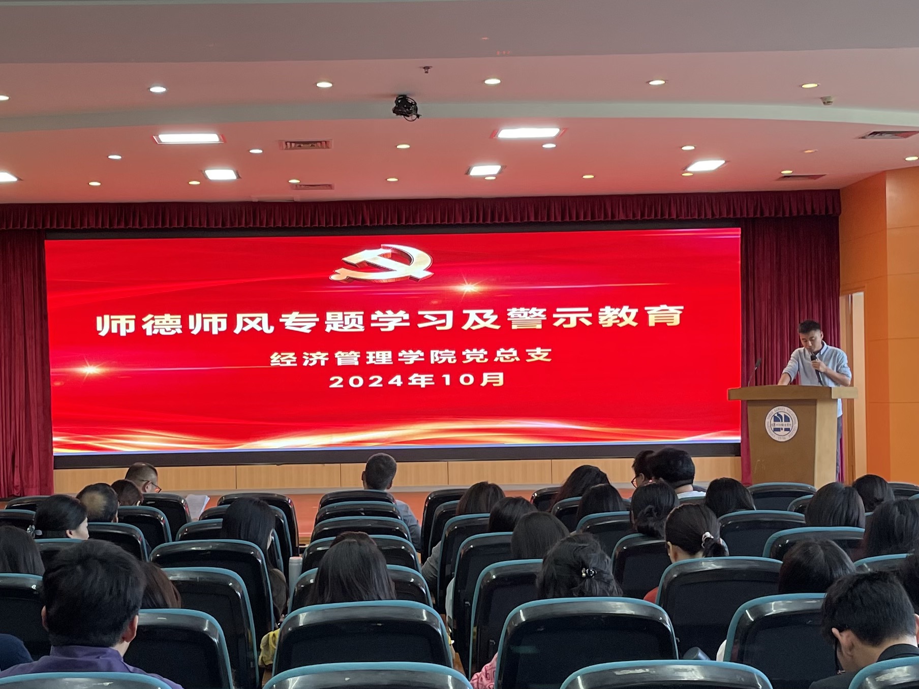 10月15日下午,经济管理学院在沙龙校区综合楼学术报告厅开展10月政治理论学习和师德师风警示教育。会议由专职组织员李静主持,经济管理学院全体教职工参加。