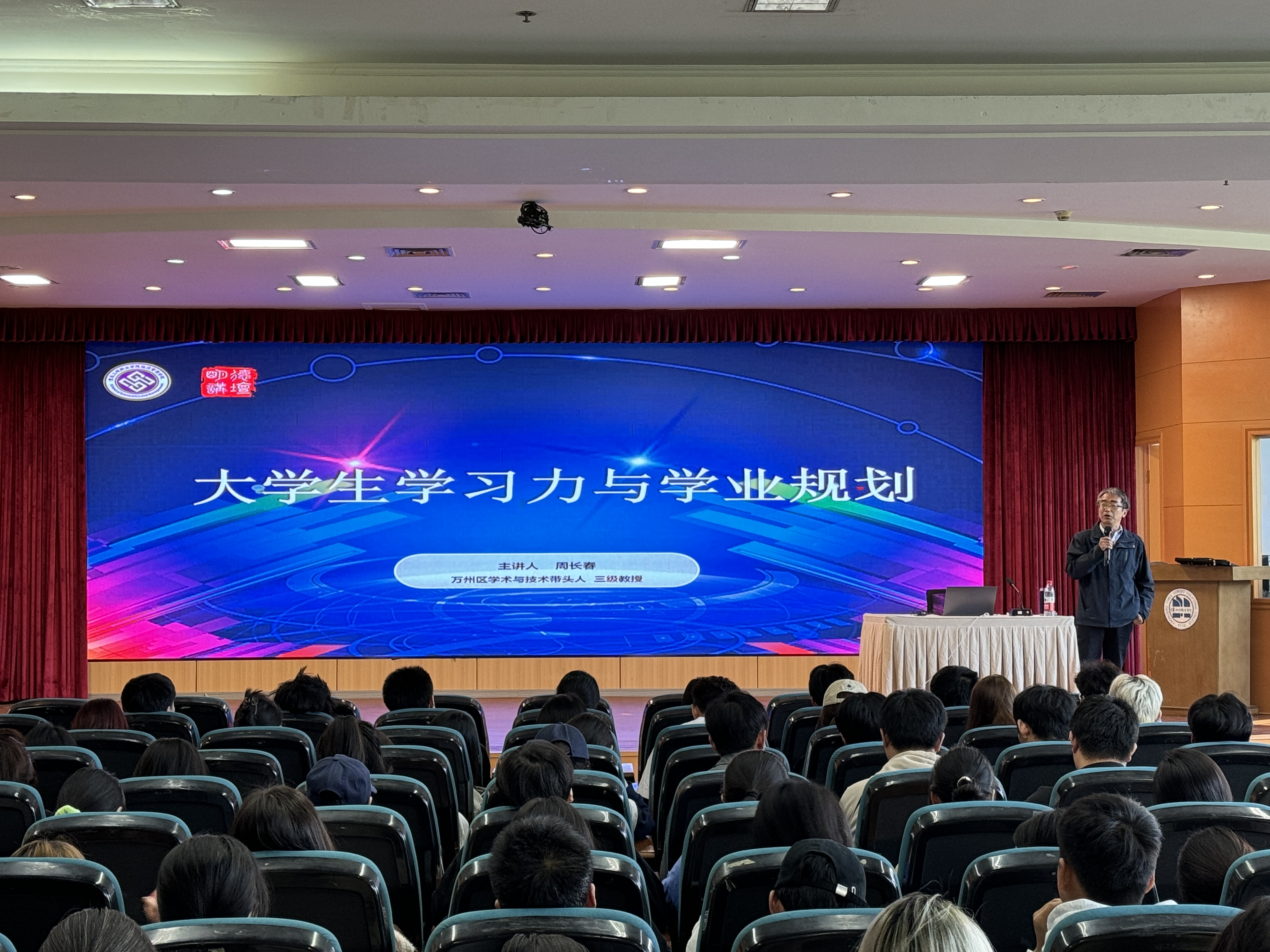 讲座中,周长春教授首先强调了学习力对于大学生成长的重要性。他指出,在当今这个知识爆炸的时代,学习力已经成为衡量一个人综合素质的重要标准。只有不断提升自己的学习力,才能更好地适应社会的发展和变化,实现个人的价值和梦想;在谈到学业规划时,周长春教授结合自己多年的教学和科研经验,为学子们提供了一系列实用的建议。他建议学子们要根据自己的兴趣和特长,选择适合自己的发展路径,同时,还要注重培养自己的综合素质和创新能力,积极参与社会实践和科研活动,为未来的职业发展打下坚实的基础。