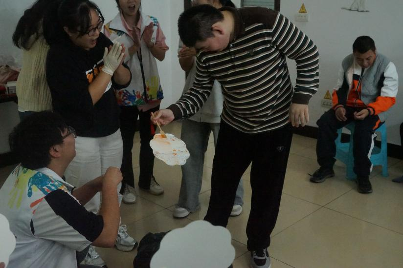 活动中,学生和老师们精心准备了漆扇绘制活动,大家耐心地指导特殊群体的成员们绘制精美的漆扇,让他们在创作中感受到艺术的魅力和乐趣。此外,师生们还为社区特殊群体送上了精心准备的礼物,这些礼物承载着大家的关爱和祝福。