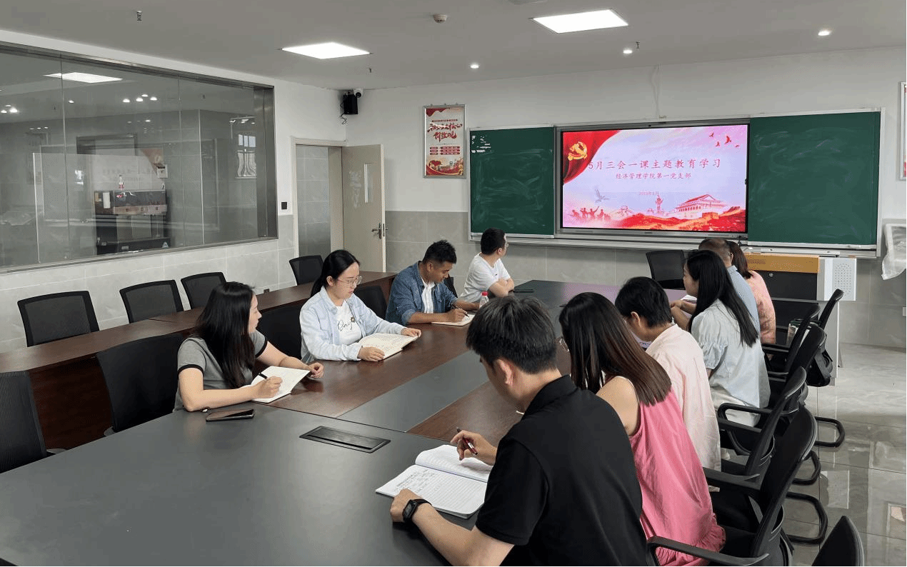 5月13日下午,经济管理学院党总支第一党支部在龙都校区致远楼602会议室组织召开"三会一课"主题教育学习会,会议由支部书记宋丽丽主持,支部全体党员参加。