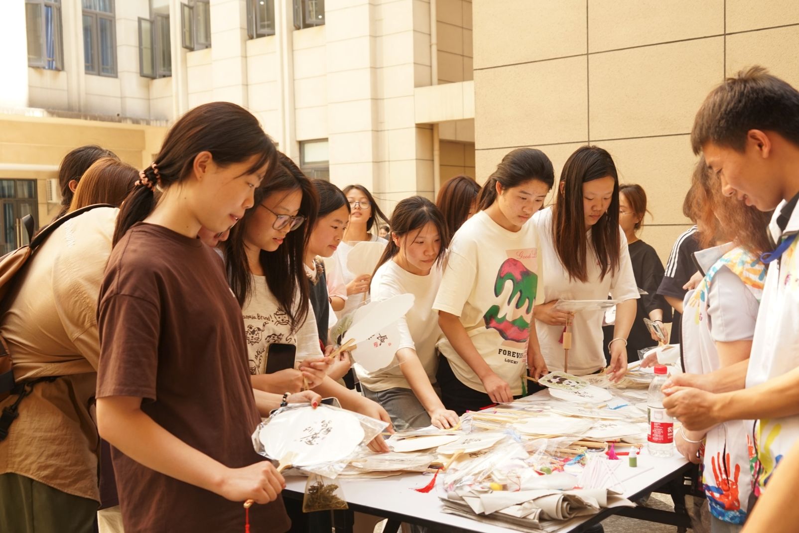 "非遗传统"主题区同样精彩纷呈。投壶区域,同学们依照古礼进行投掷,箭矢入壶引发阵阵喝彩;漆扇制作、手工剪纸工作台旁,同学们在志愿者指导下完成了一件件独具创意的作品。