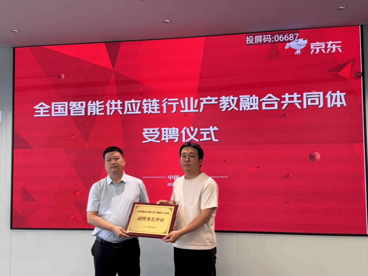 8月21日,学院受邀参加京东总部召开的“全国智能供应链行业产教融合共同体2025年工作推进会”。会上,学院被授予“副理事长单位”称号,标志着学院在智能供应链领域的行业地位与影响力进一步提升。双方围绕校企合作、课程开发、实训基地建设、技术共享等方面达成深度合作共识,学院未来将依托京东物流作为链主企业的资源与平台优势,共同推动现代物流管理专业群的创新与实践能力培养。